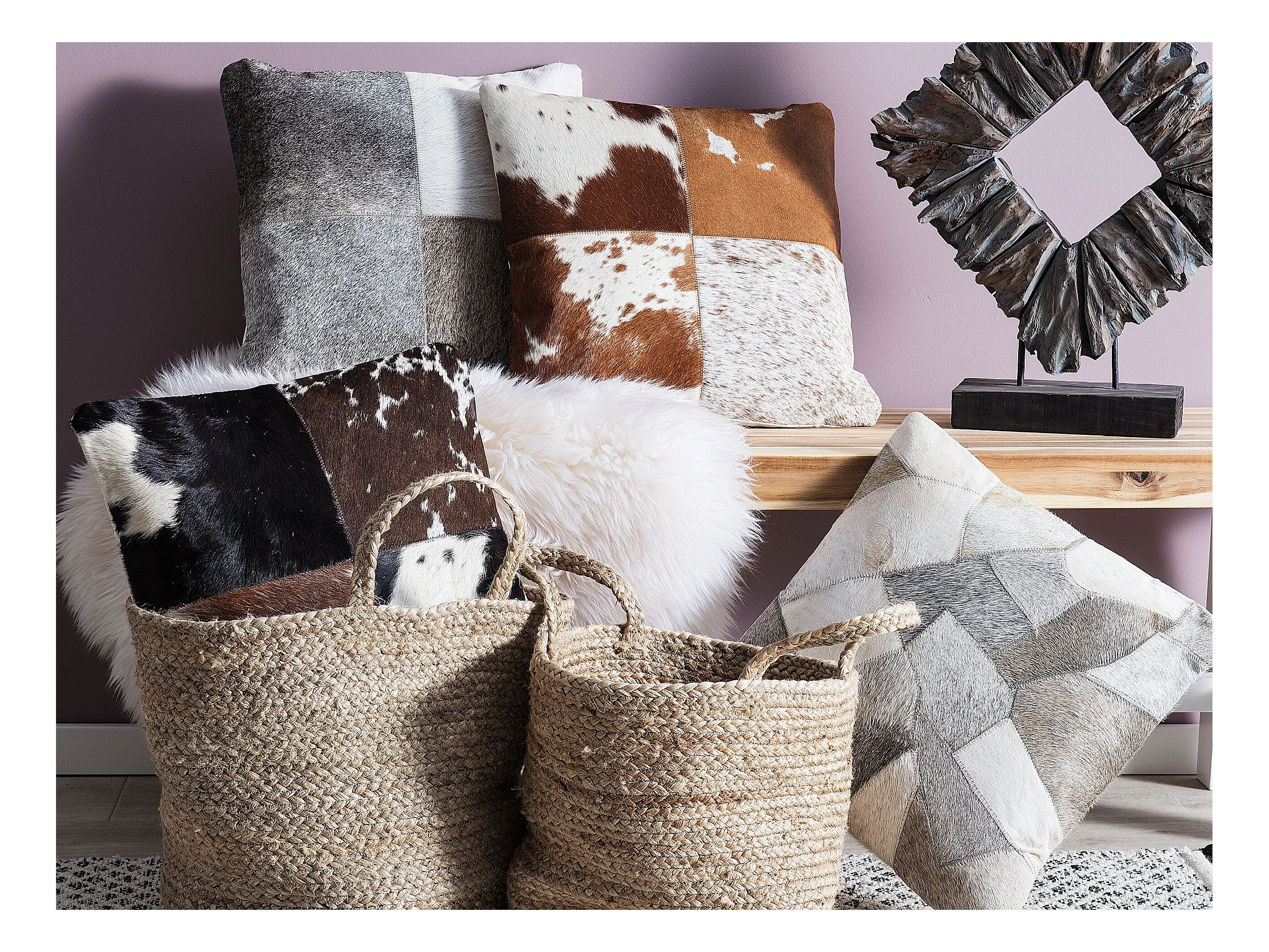 Poduszka dekoracyjna NELLAD Skóra naturalna 45 x 45 cm Szary Patchwork