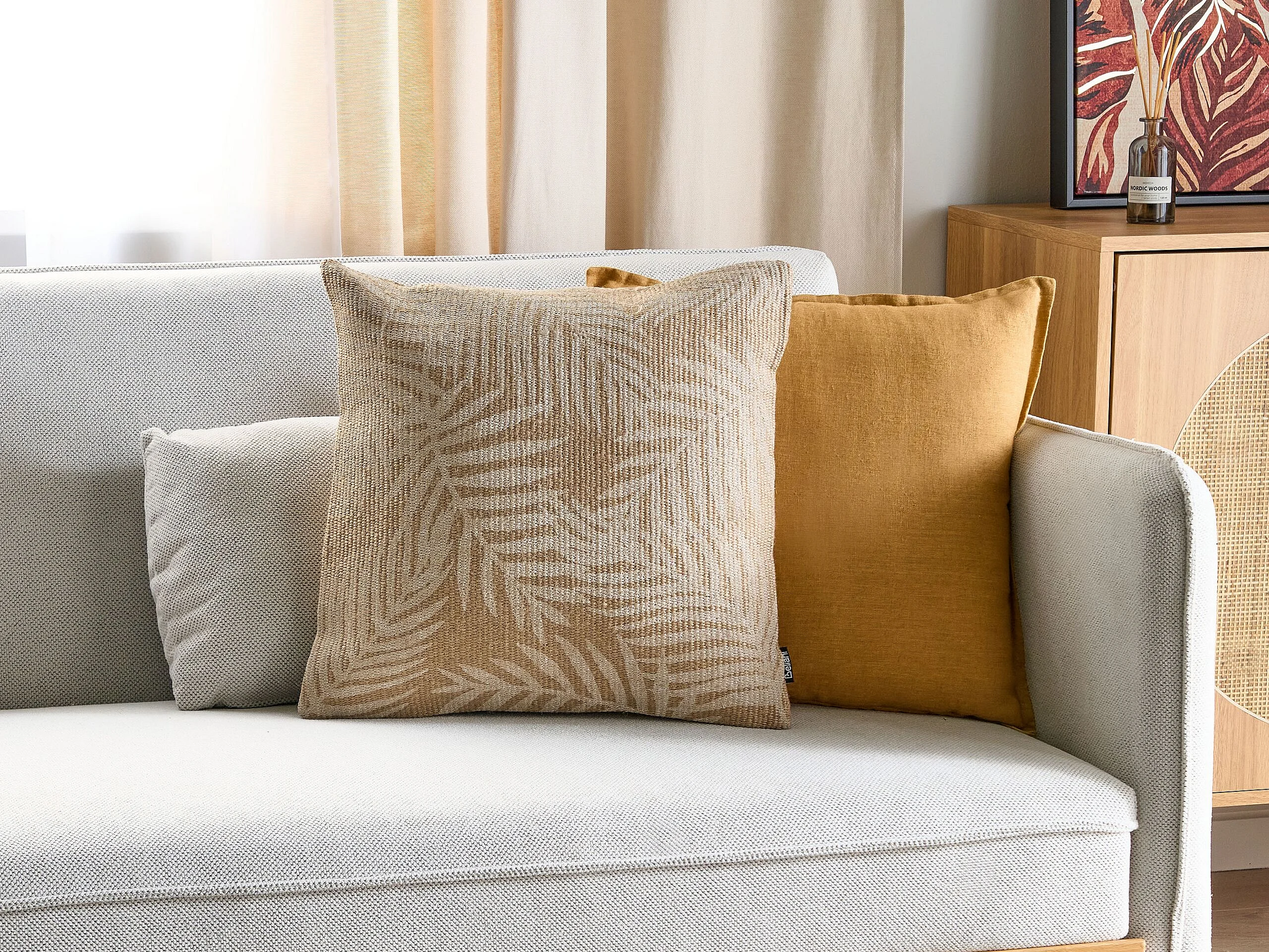 Poduszka dekoracyjna RUBUS Juta 45 x 45 cm Beżowy Wzór roślinny