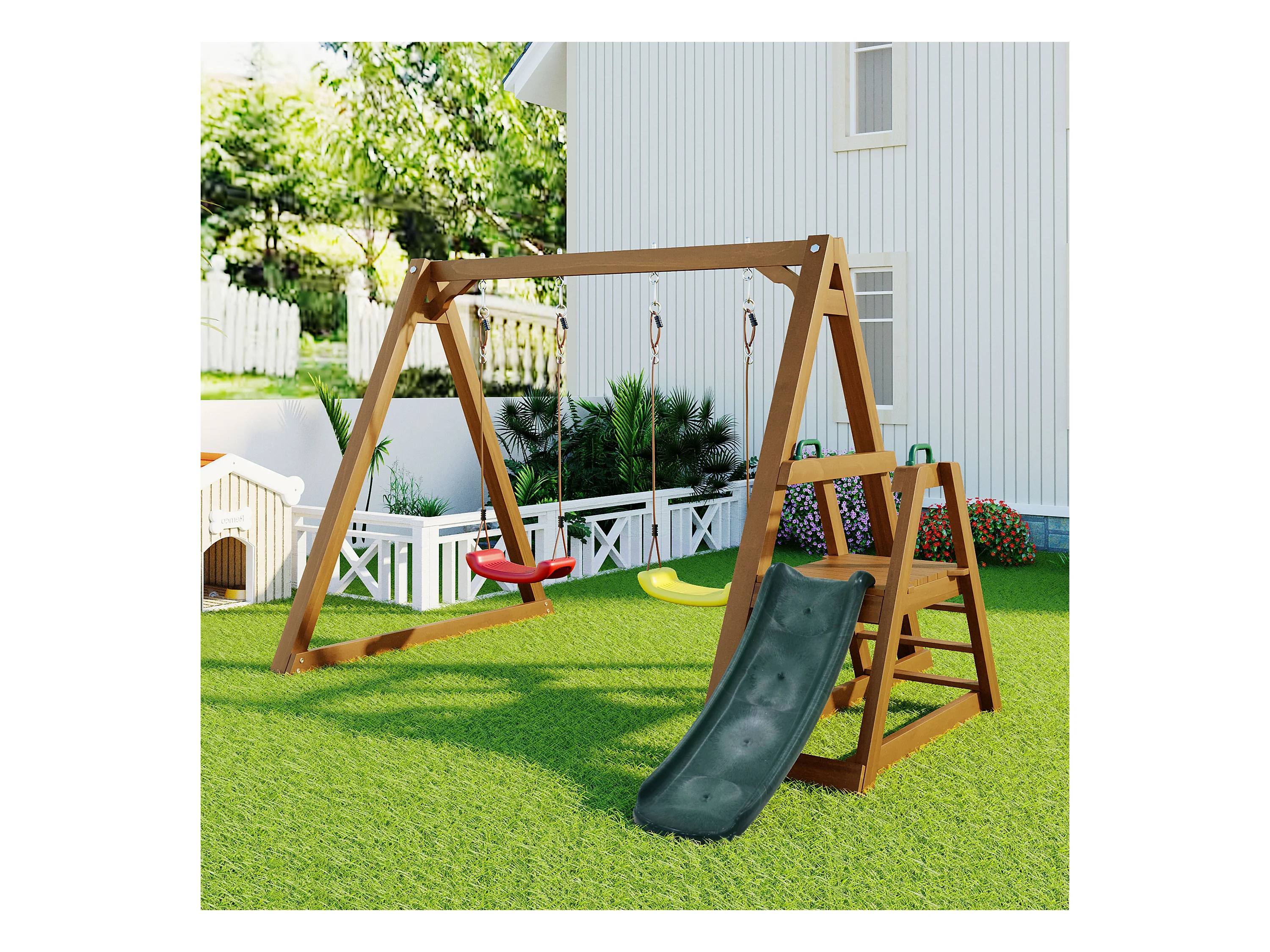Huśtawka Drewniana "Kida" z Zjeżdżalnią, Huśtawką, Twarzą w Twarz i Kołyską - Dla Dzieci od 3 do 12 lat