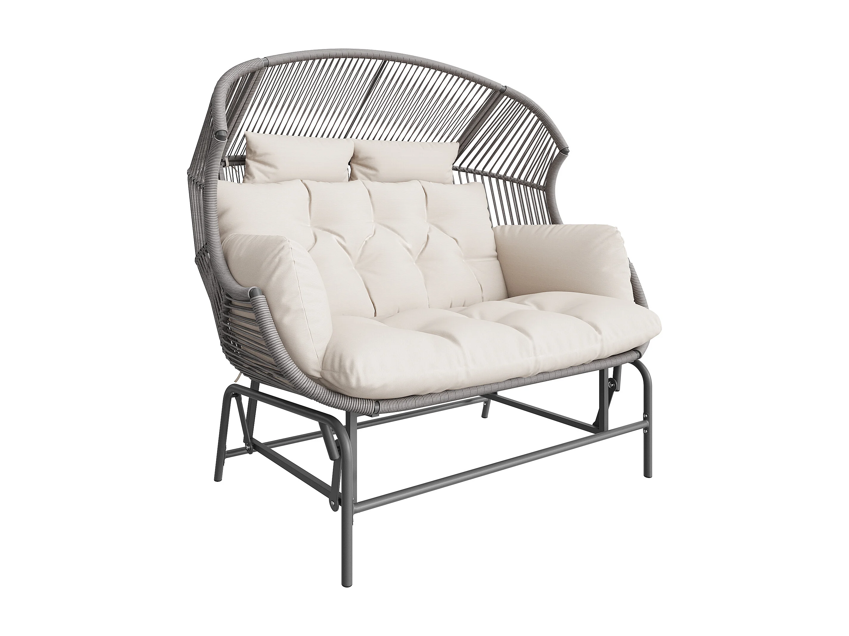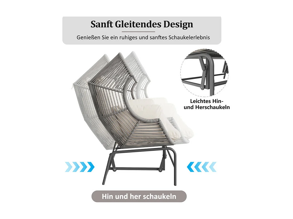 Podwójny fotel bujany ogrodowy 145x85x143cm - Fotel bujany - Rattan PE + żelazo + wodoodporna tkanina - szary