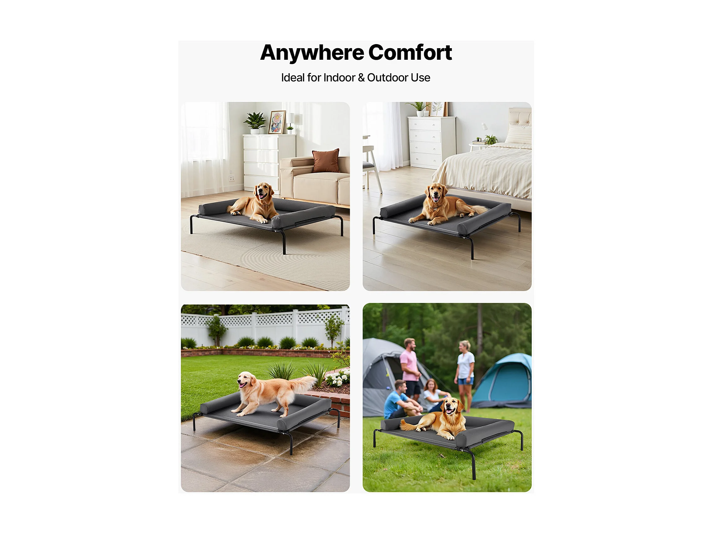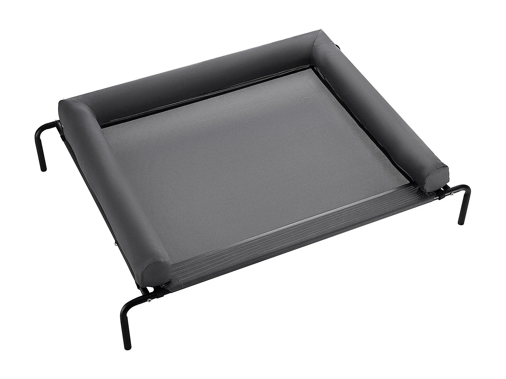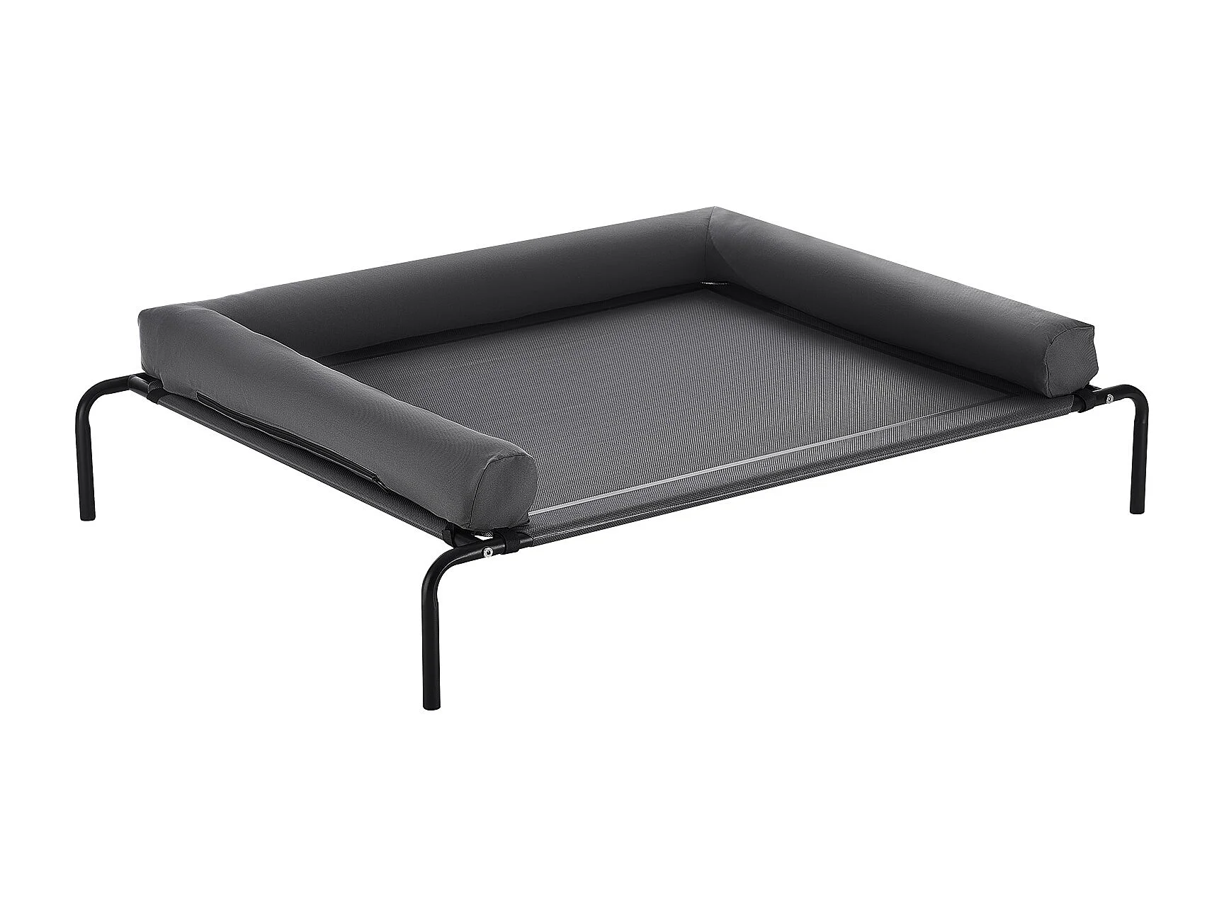 Podwyższone Łóżko SucceBuy dla Psów, Łóżko Polowe dla Zwierząt Domowych z Poduszką Nadającą Się do Prania, ze Stalową Ramą i Oddychającą Siatką, XL, Szare