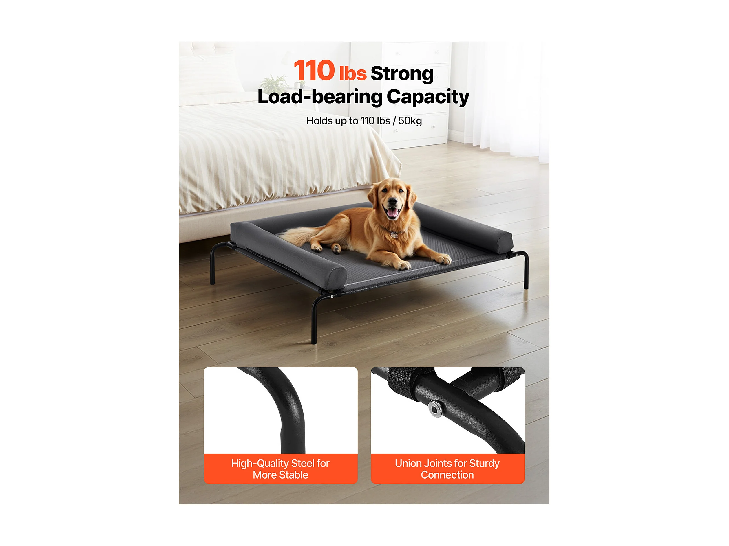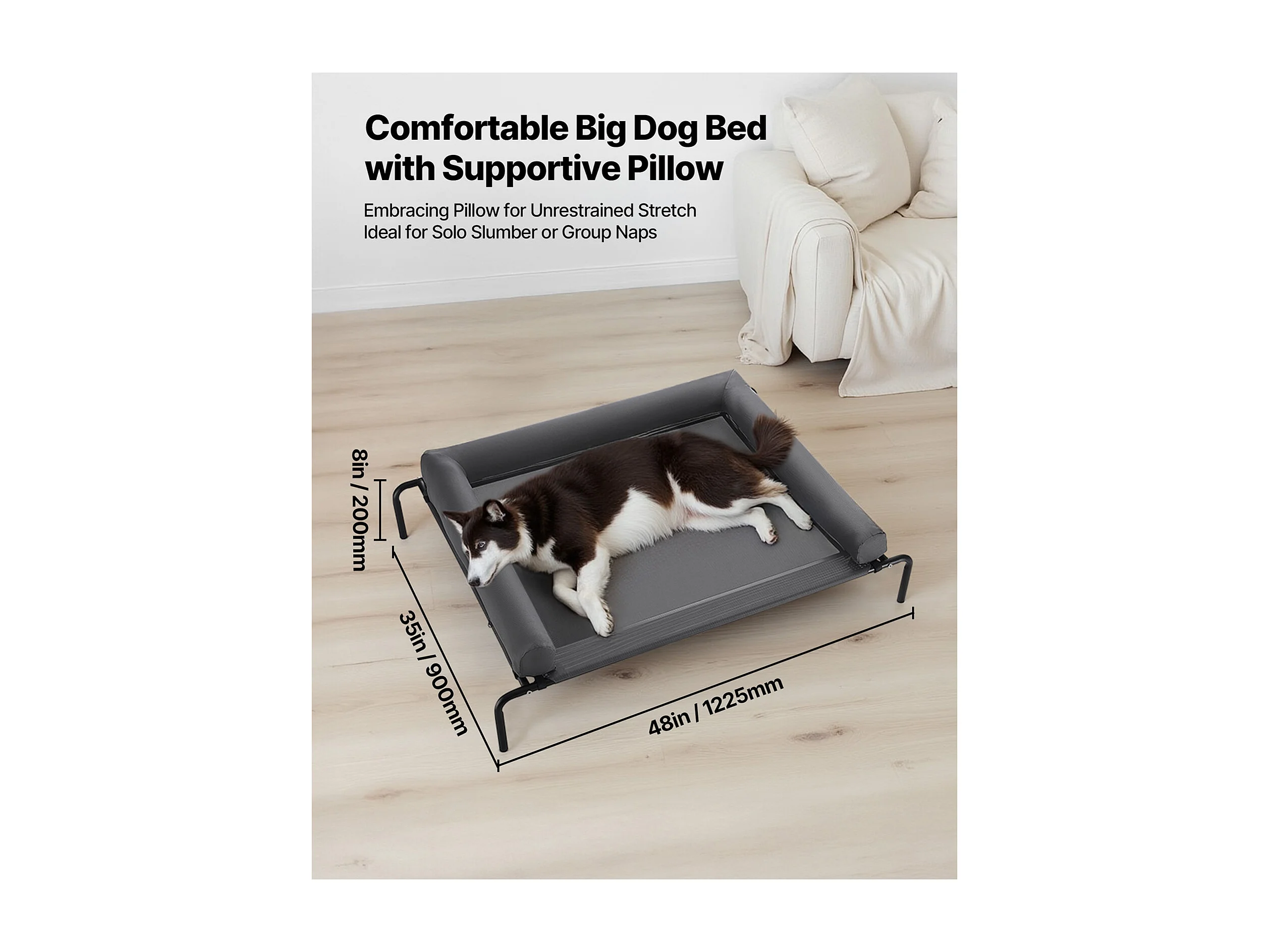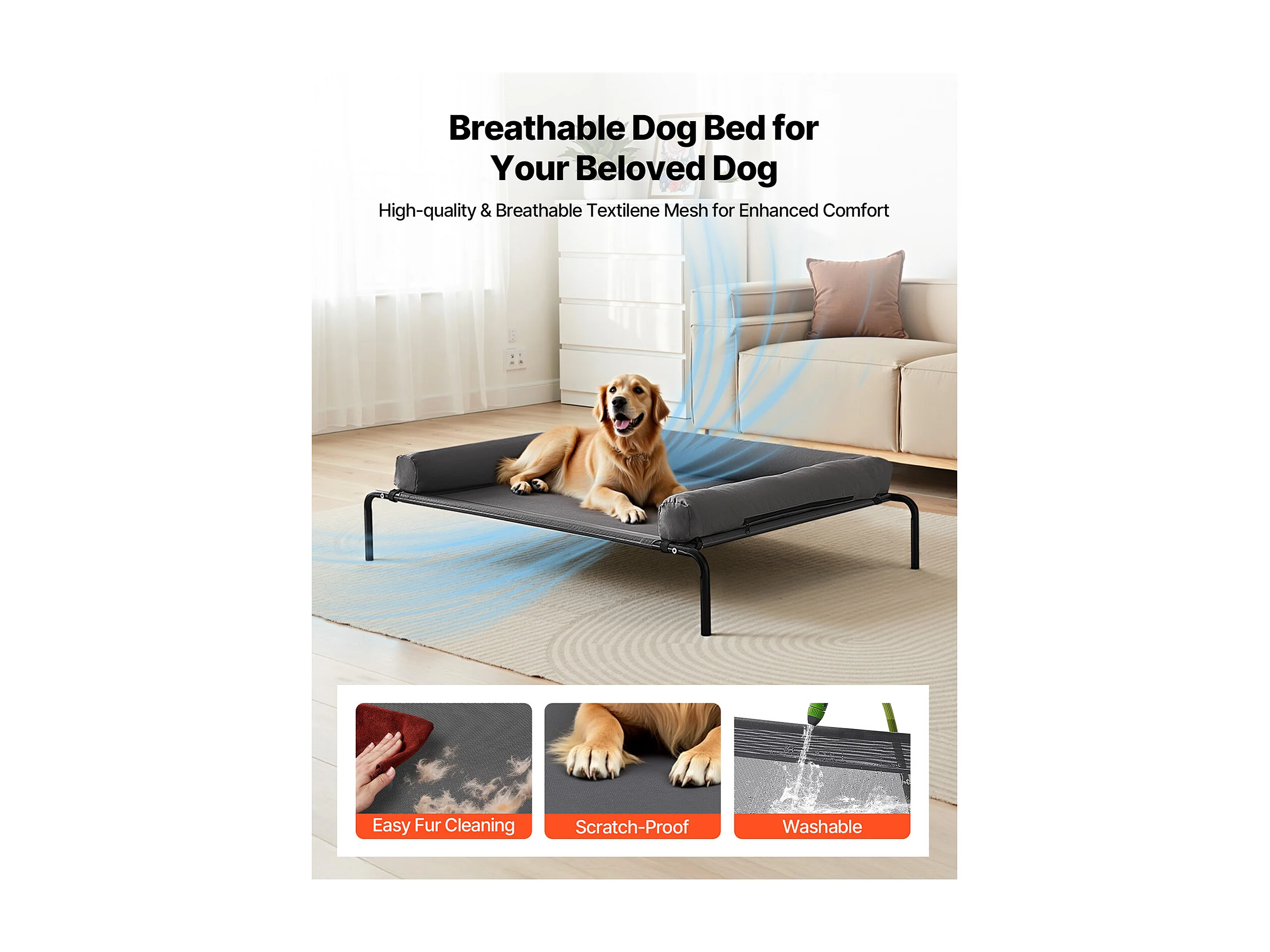 Podwyższone Łóżko SucceBuy dla Psów, Łóżko Polowe dla Zwierząt Domowych z Poduszką Nadającą Się do Prania, ze Stalową Ramą i Oddychającą Siatką, XL, Szare