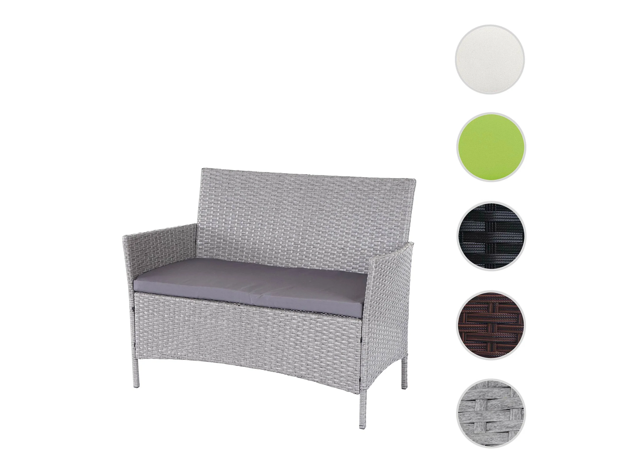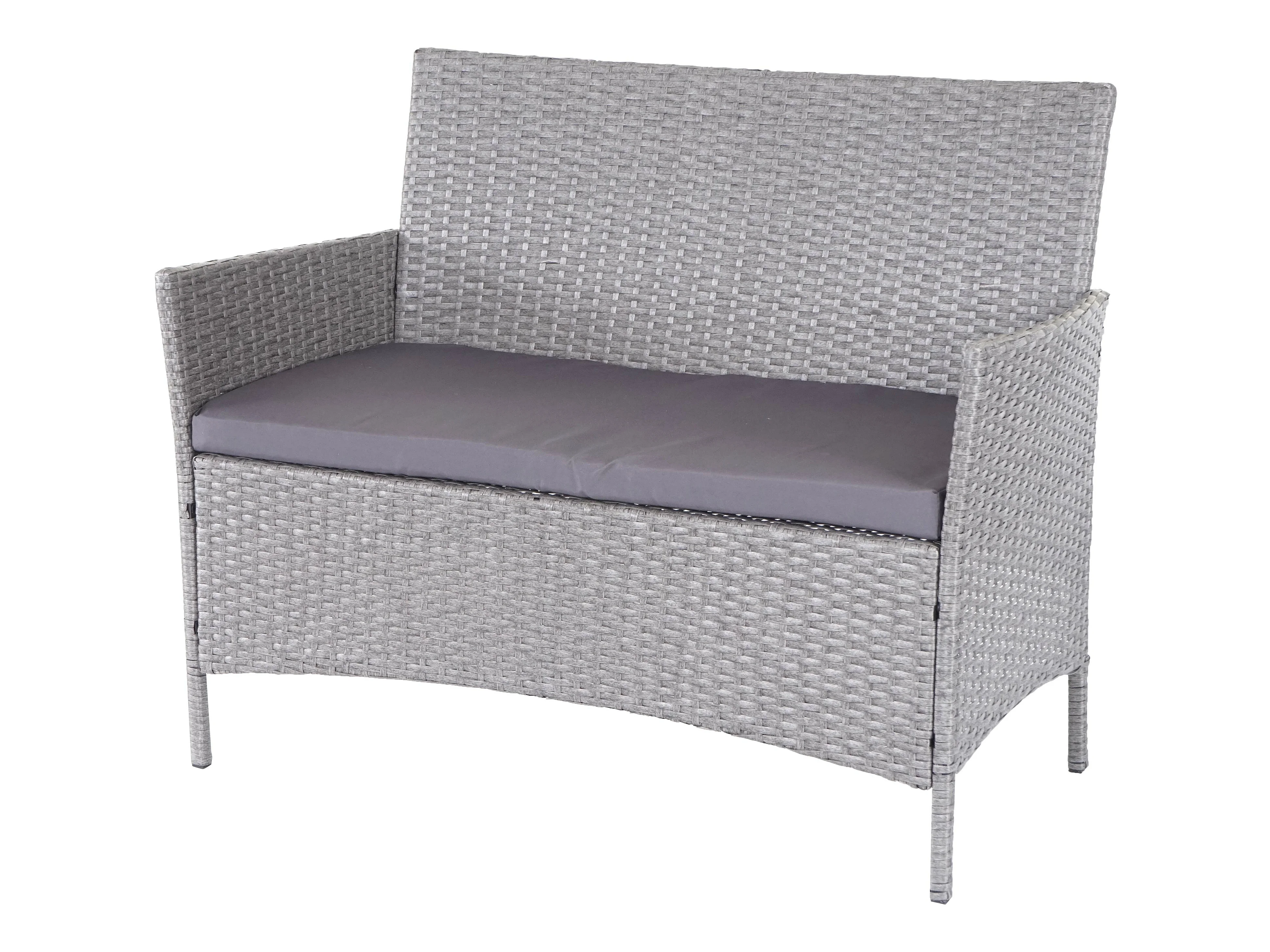 Ławka 2-osobowa z polirattanu MCW-F39, szary, poduszki beżowe