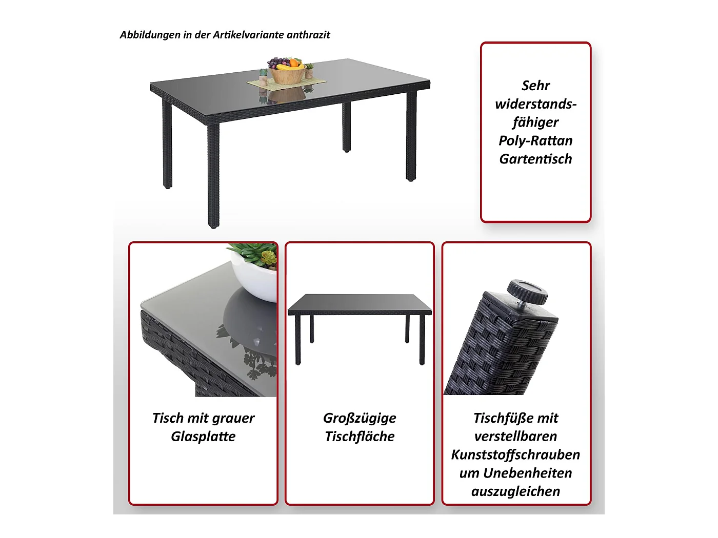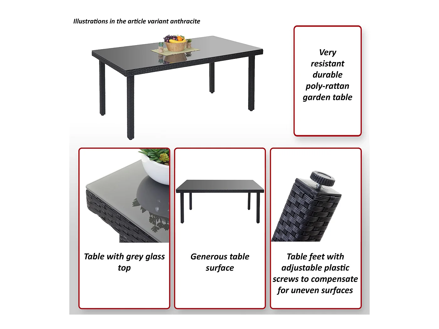 Poli rattanowy stół ogrodowy Chieti, antracyt