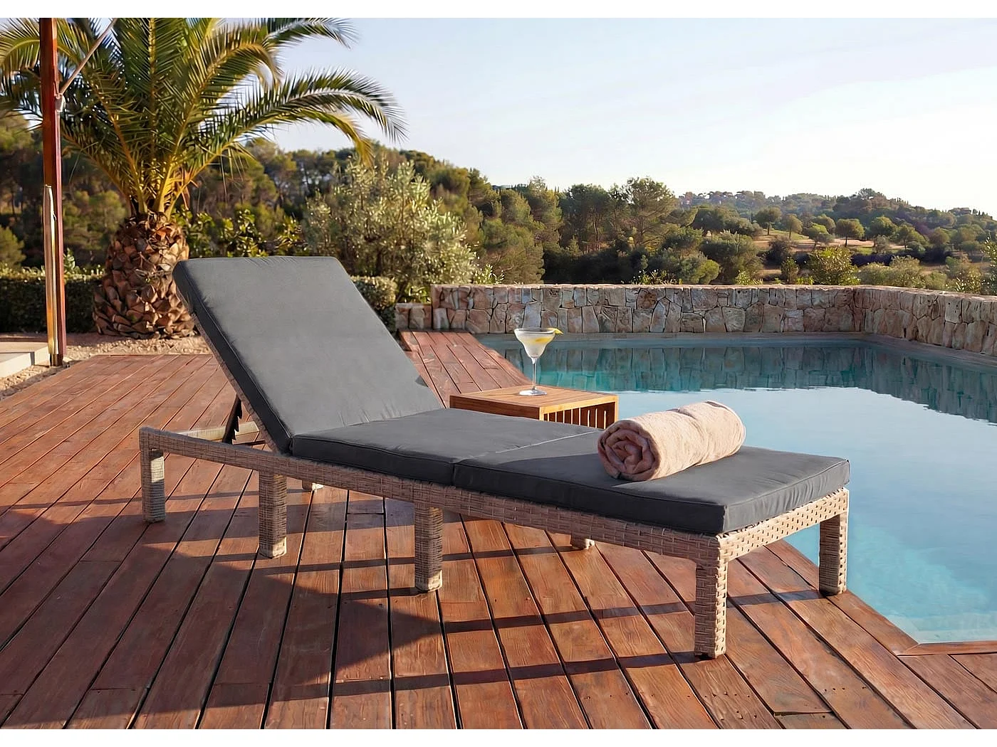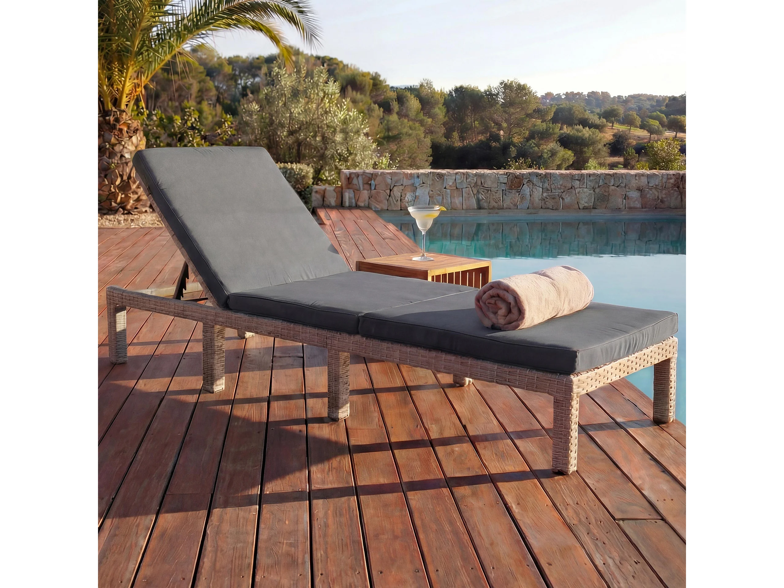 Leżak z polirattanowym siedziskiem MCW-A51 Basic, Basic szary, poduszka ciemnoszara