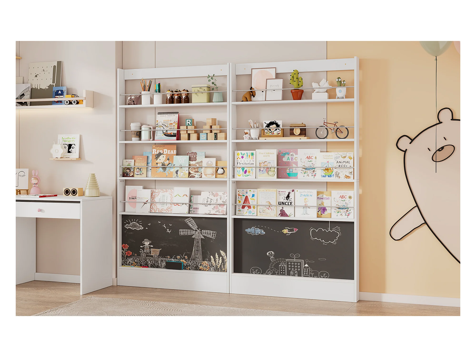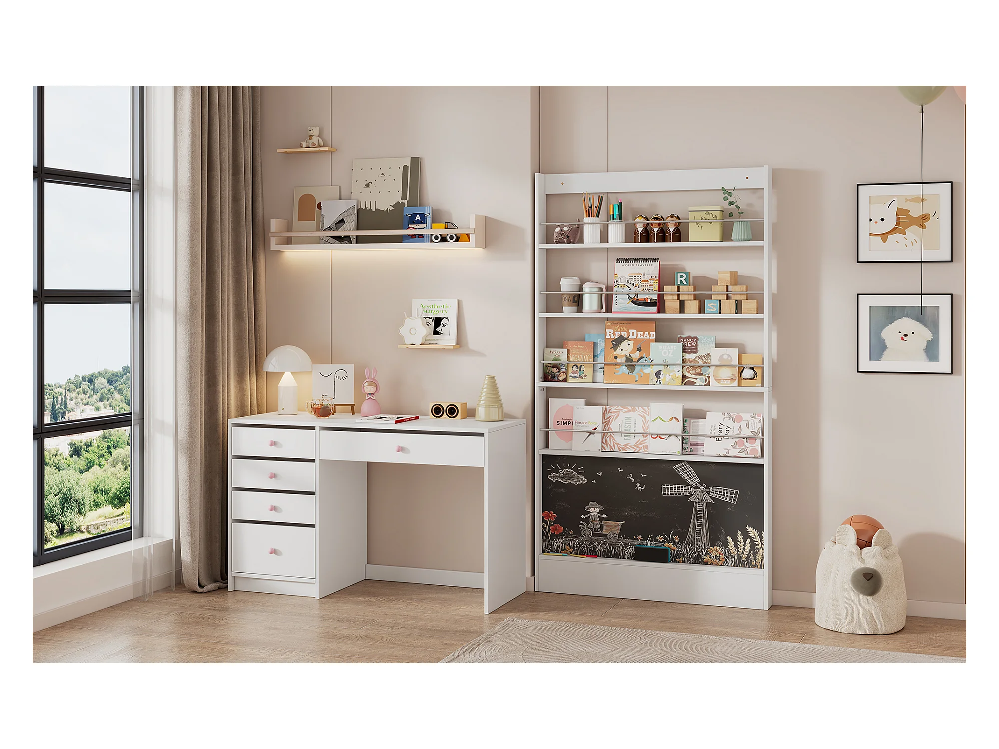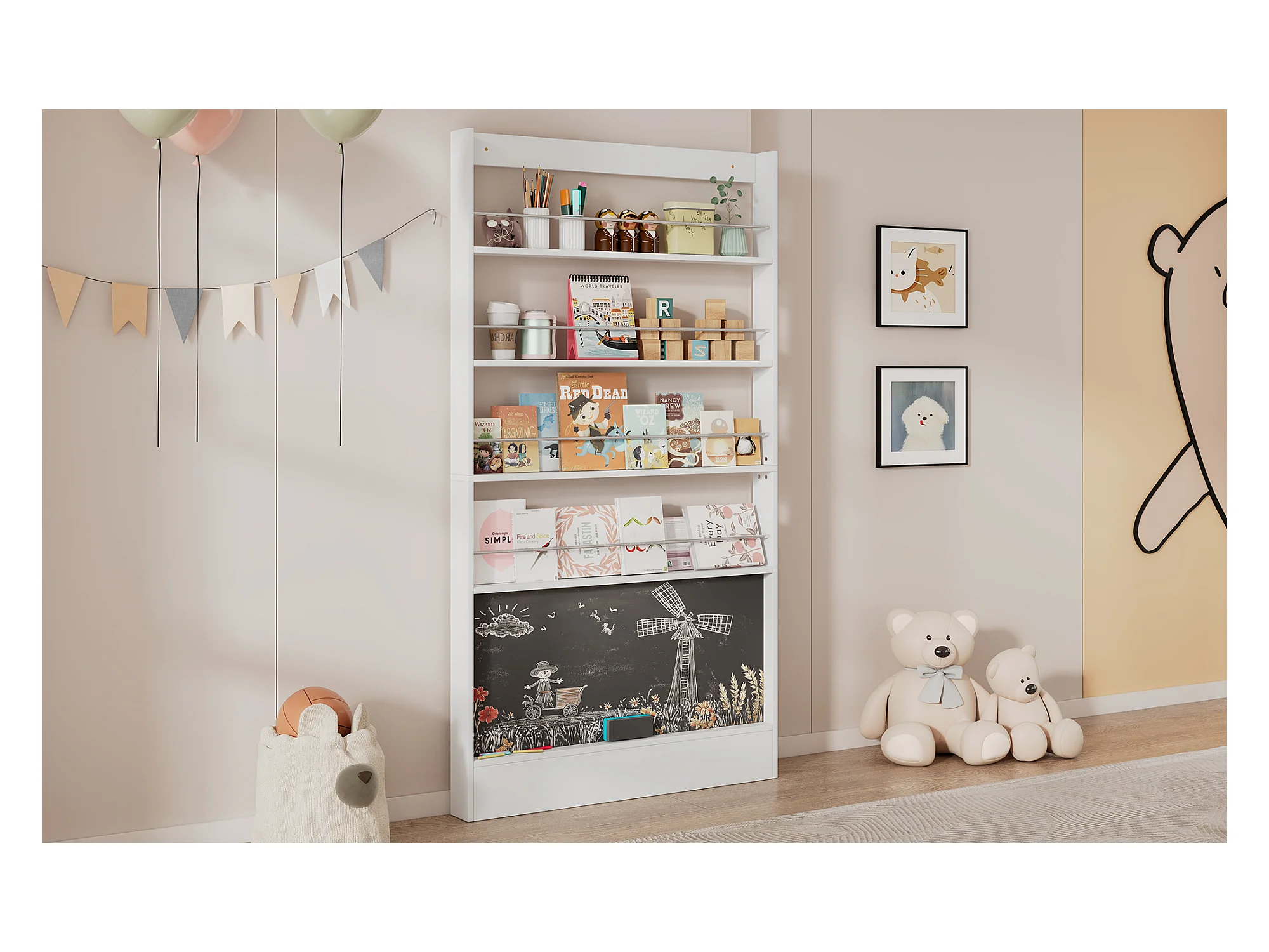Półka dziecięca do przechowywania - 100 x 10 x 180 cm - 4 poziomy + tablica do malowania - MDF + Metal - biały