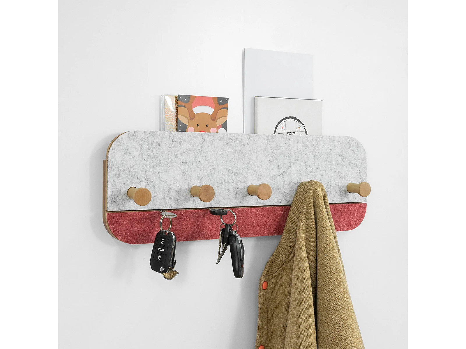 Półka na ścianę z 5 haczykami, Wieszak FHK16-R