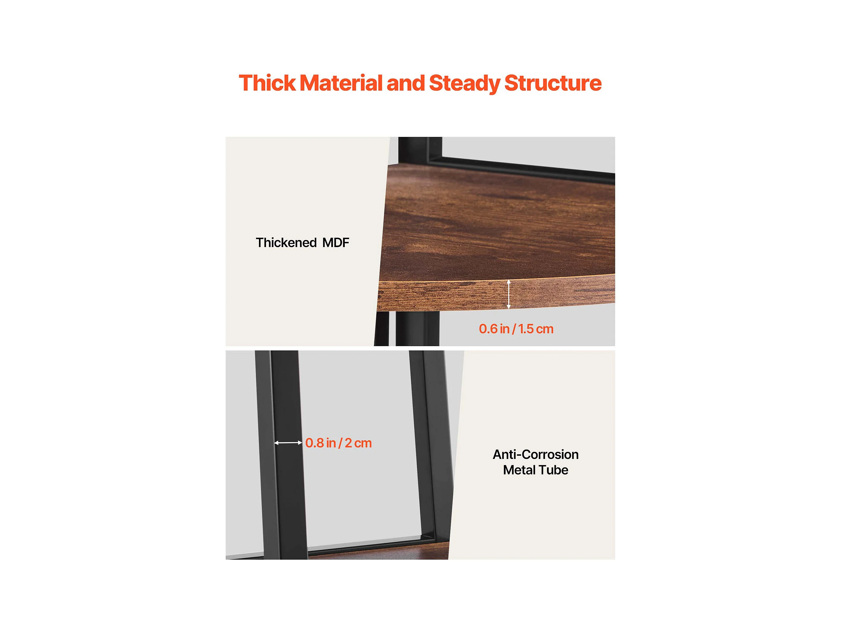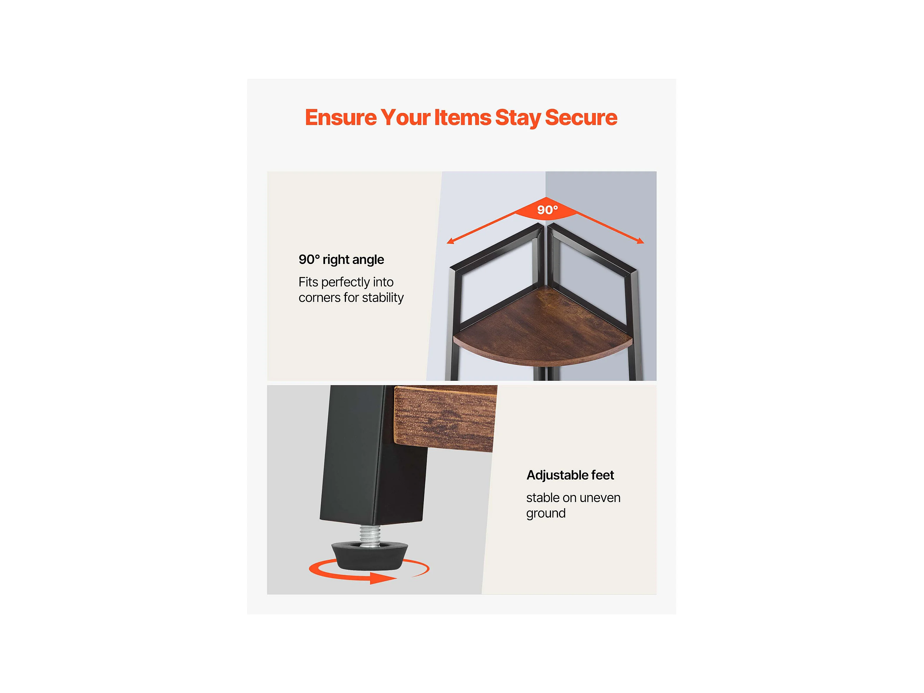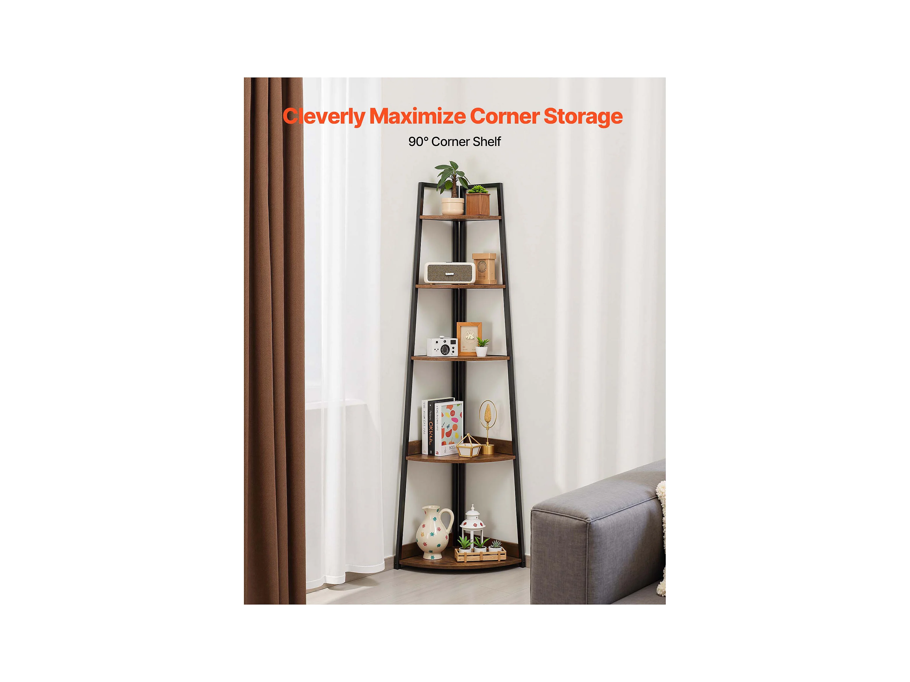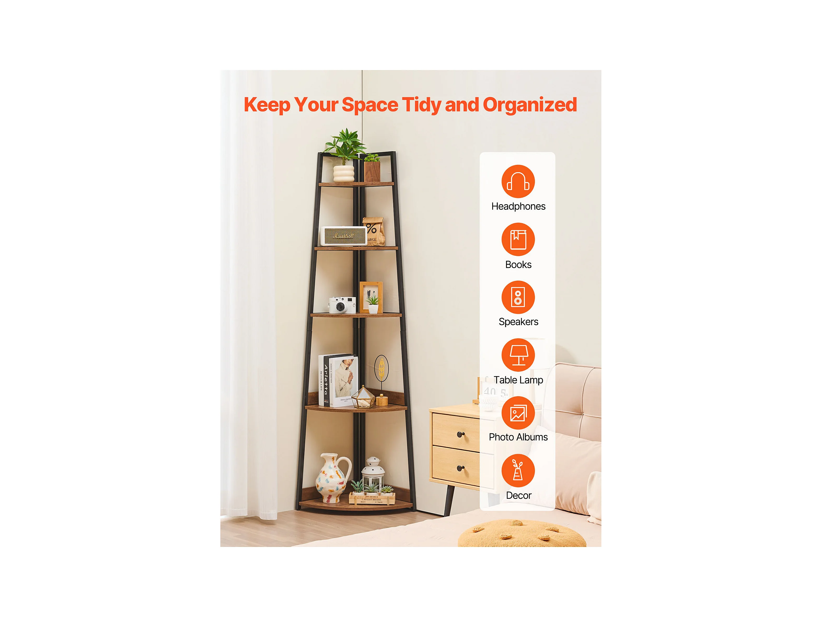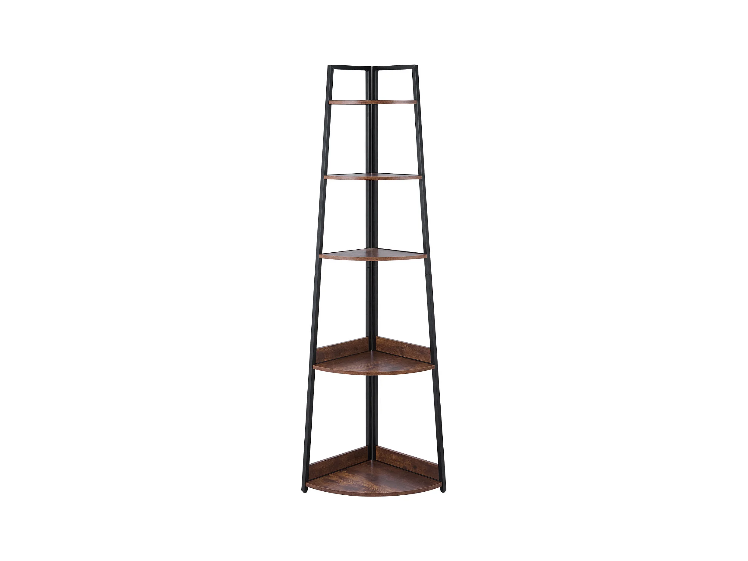Półka Narożna SucceBuy z 5 Poziomami, Narożna Biblioteka, Wysokość 178 cm, Meble do Przechowywania na Ścianie z Metalową Ramą i Półkami z Drewna