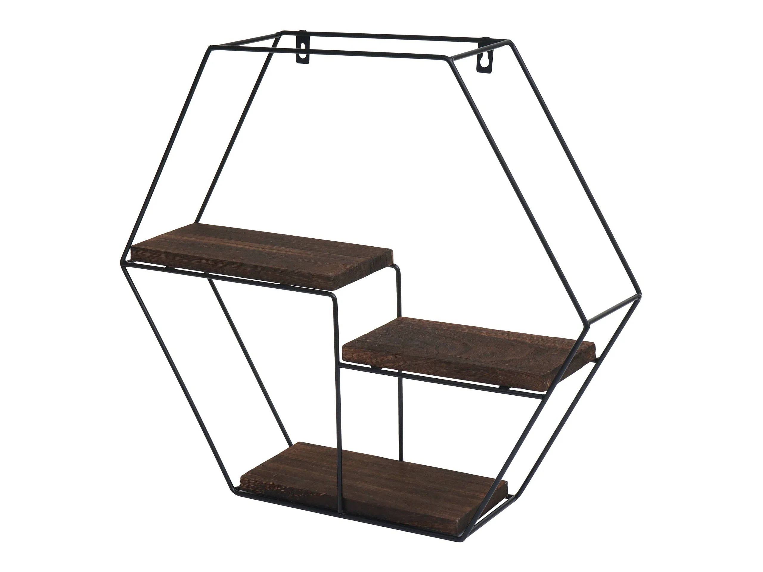 Półka ścienna Valora z wieszakami – dąb sonoma z czarną ramą
