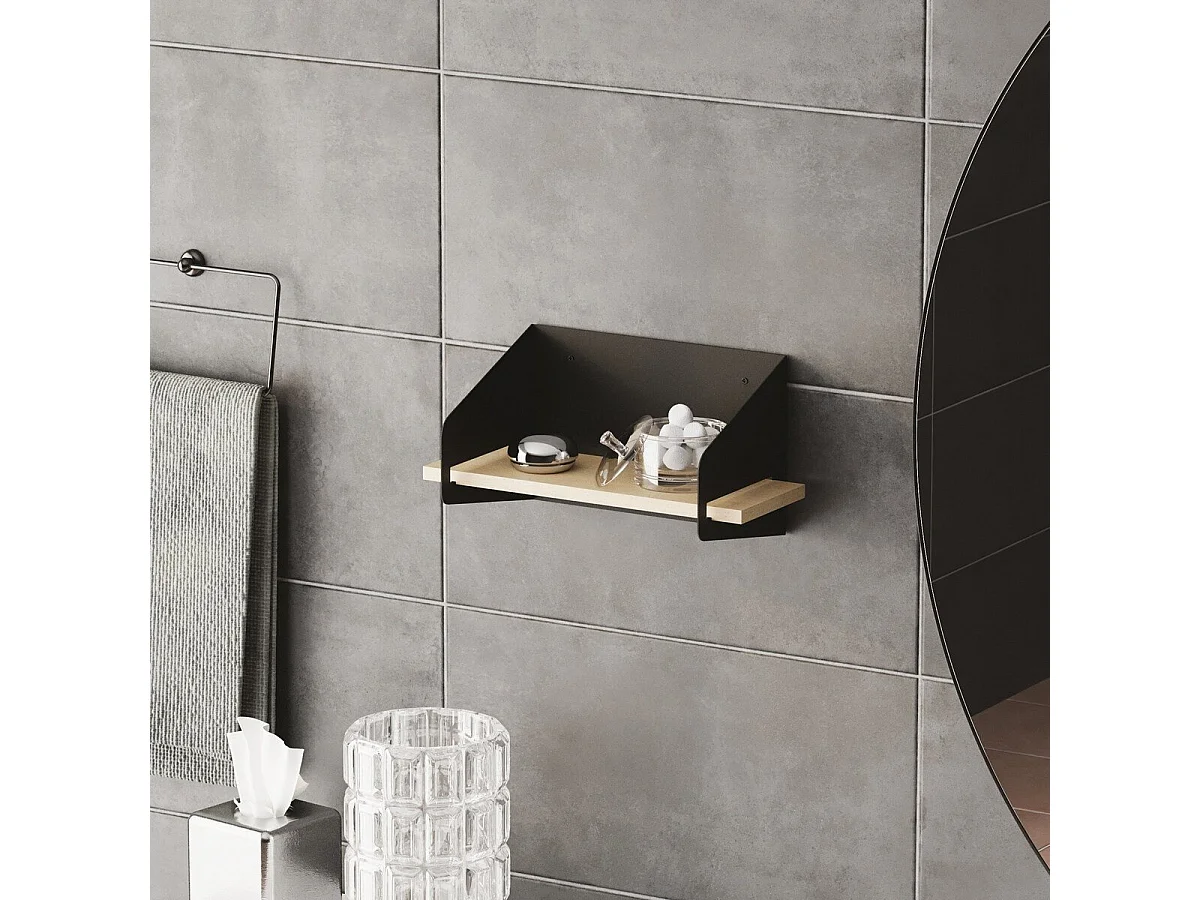 Półka ścienna z litego drewna sosnowego i metalową półką L40 cm - WREN