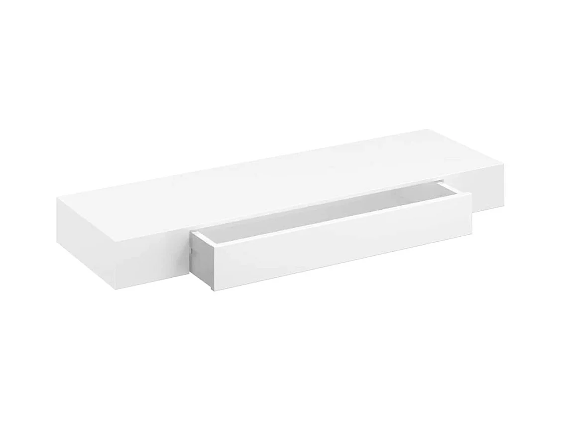 Biała półka ścienno-sufitowa z 1 szufladą z MDF - Przechowywanie książek/DVD