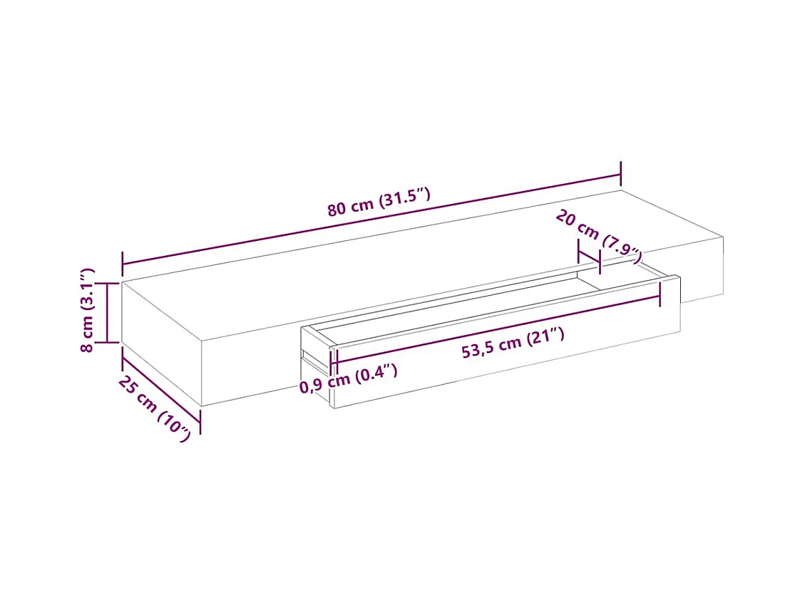 Półka ścienna z szufladą Biały 40x23,5x10 cm MDF Styl Nowoczesny