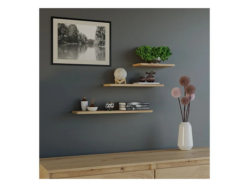 Półki wiszące Tobi 3P | Dąb Artisan | 60x15x1.8 | Komplet 3 Półek