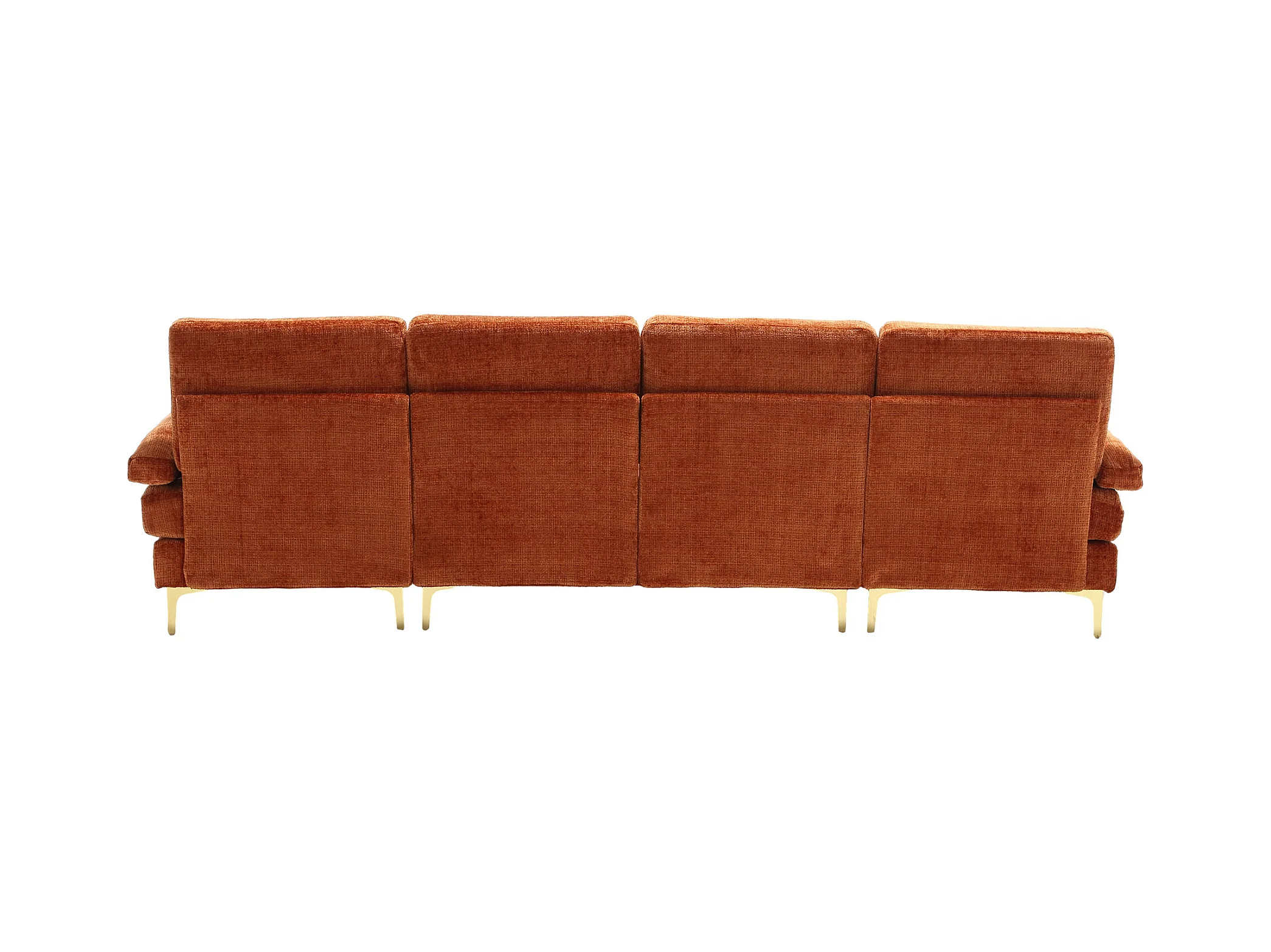 Pomarańczowa sofa w kształcie litery U z szenili, tapicerowana, z poduszkami i poduszkami dekoracyjnymi, do salonu i sypialni