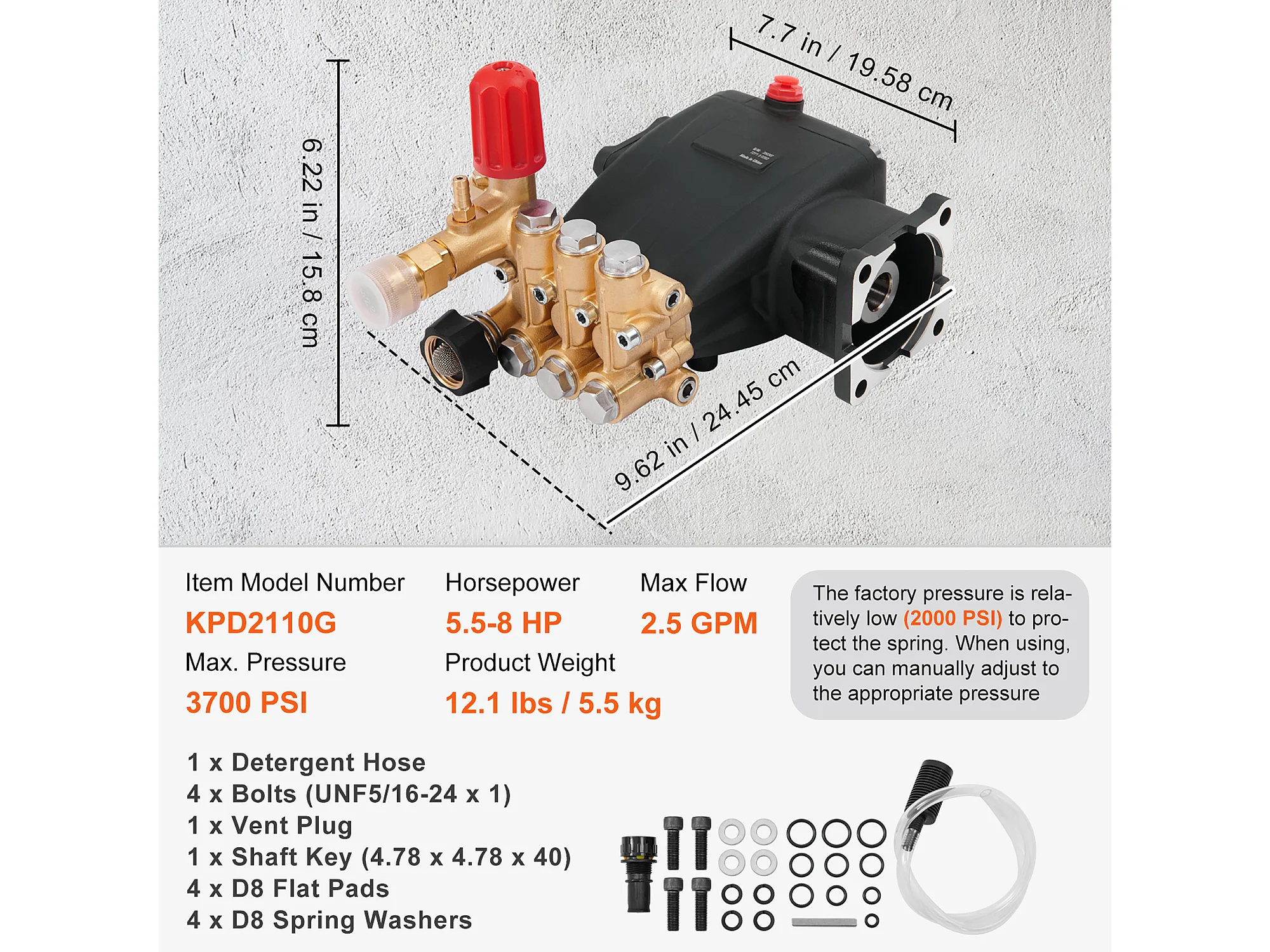 Pompa do Myjki Ciśnieniowej, SucceBuy Pompa do Myjki Ciśnieniowej 255 bar 9.5 L/min 19.05 mm Pozioma