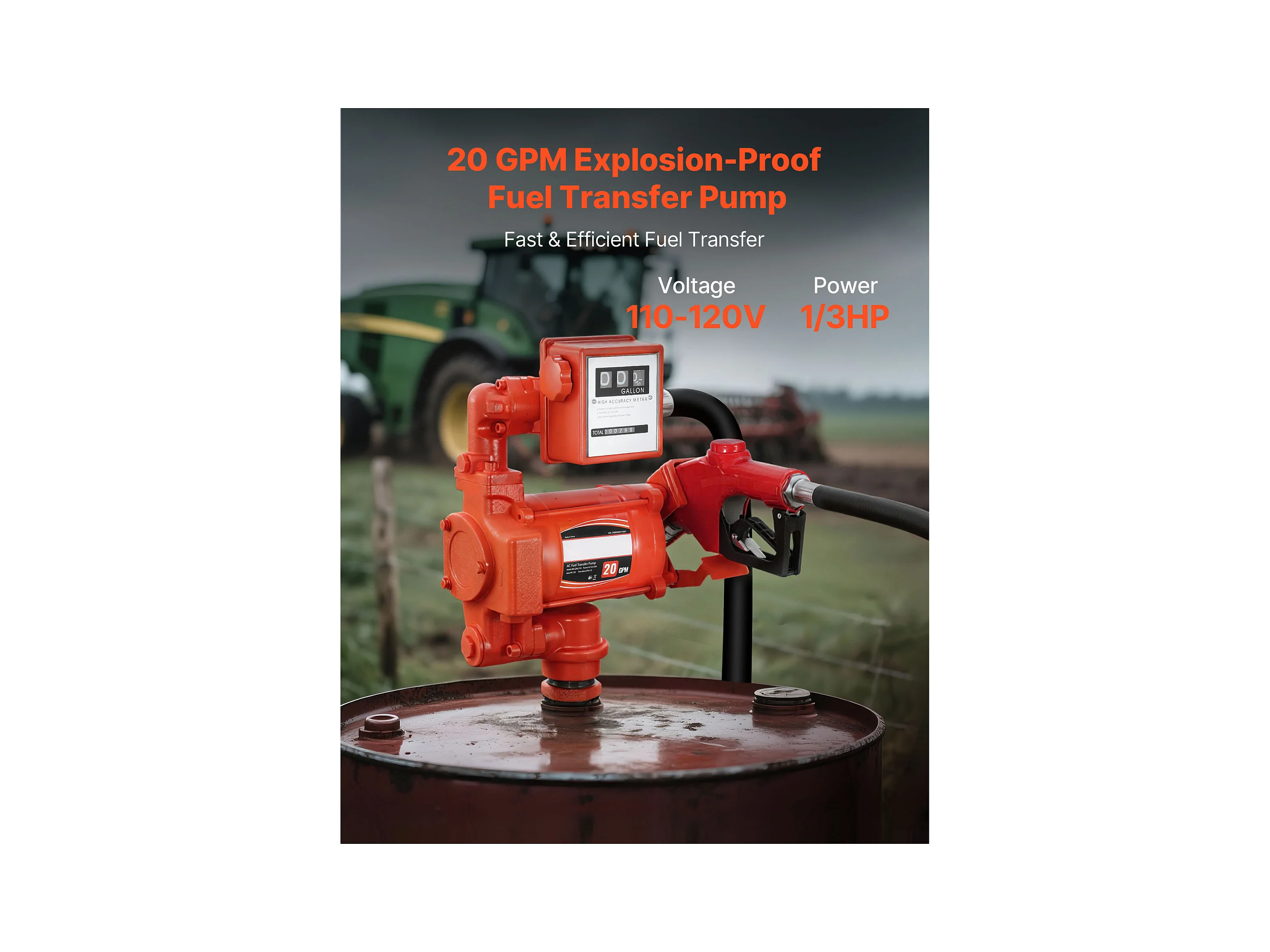 Pompa Transferowa Paliwa SucceBuy 230 V AC Elektryczna Pompa Transferowa Oleju Napędowego 76 L/min, z Przepływomierzem, Pistolet Paliwowy Auto-Wyłączanie