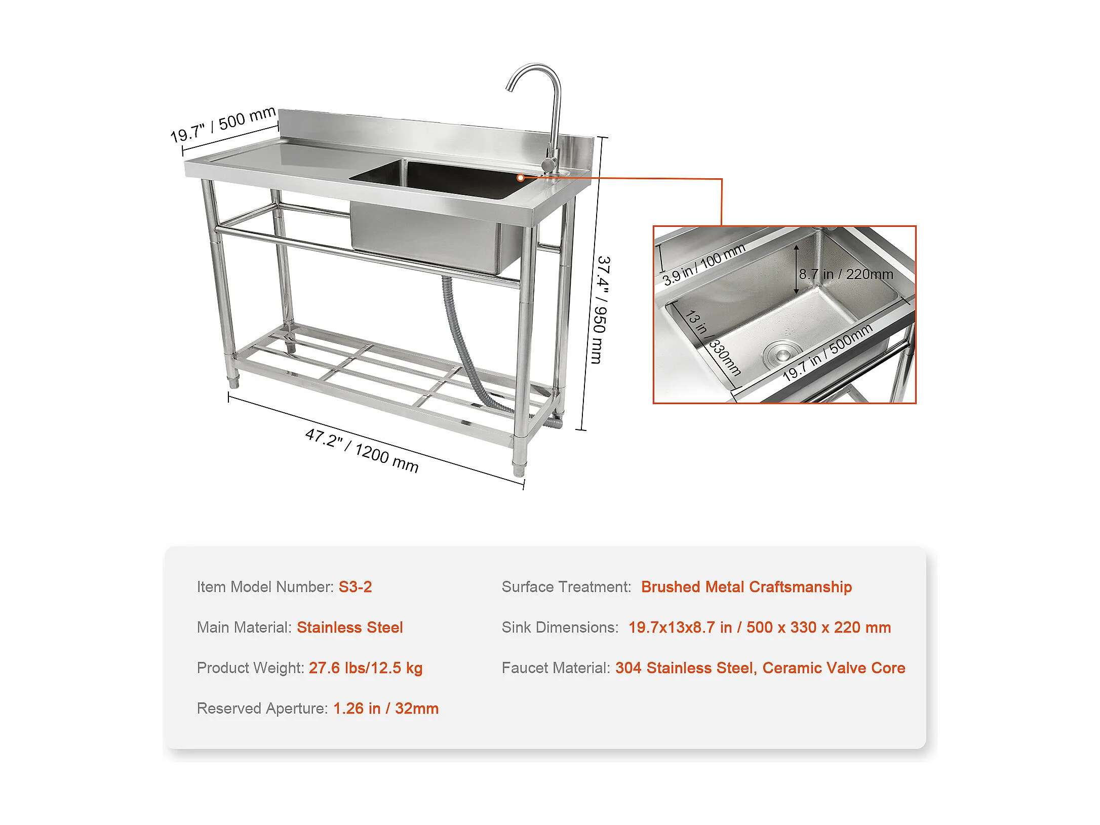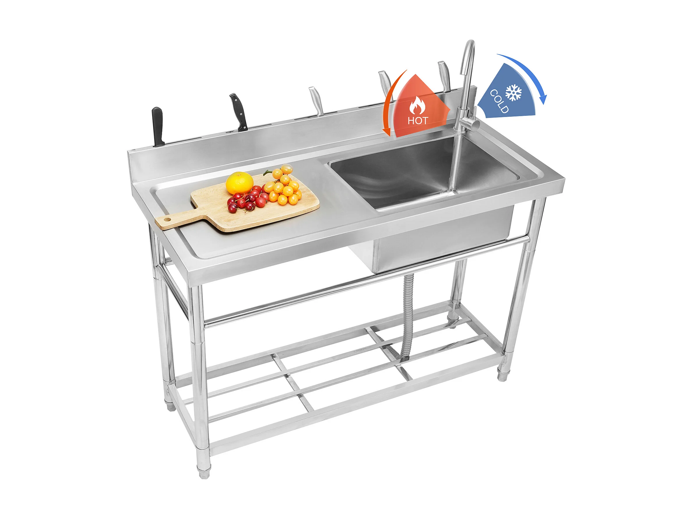 Praktyczna Zmywarka Kuchenna SucceBuy, z Stali Nierdzewnej, Prosty Zbiornik z Półką Roboczą, 108 x 50 x 95 cm