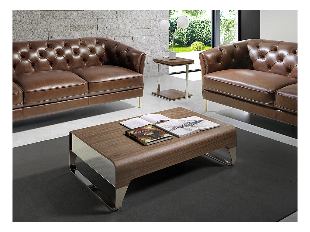Prostokątny stolik kawowy z orzecha włoskiego i chromowanej stali