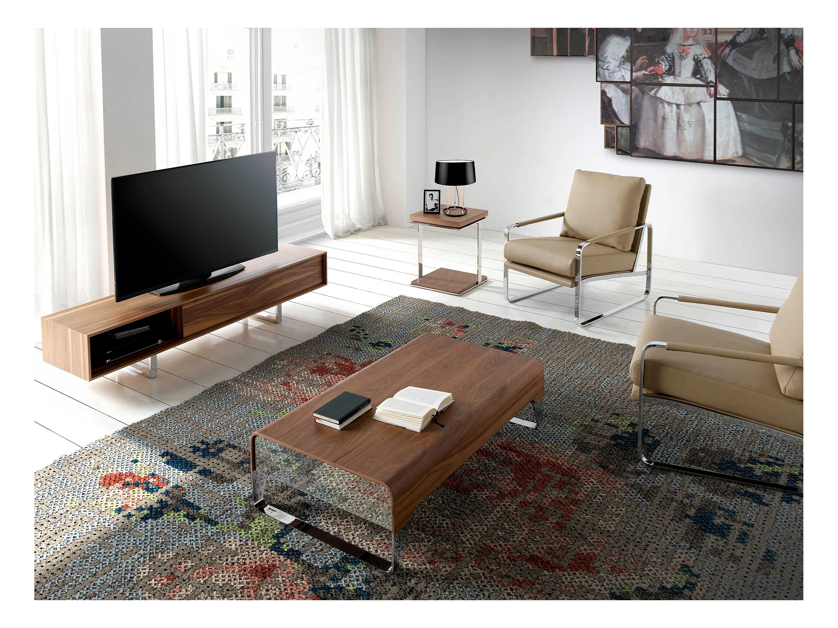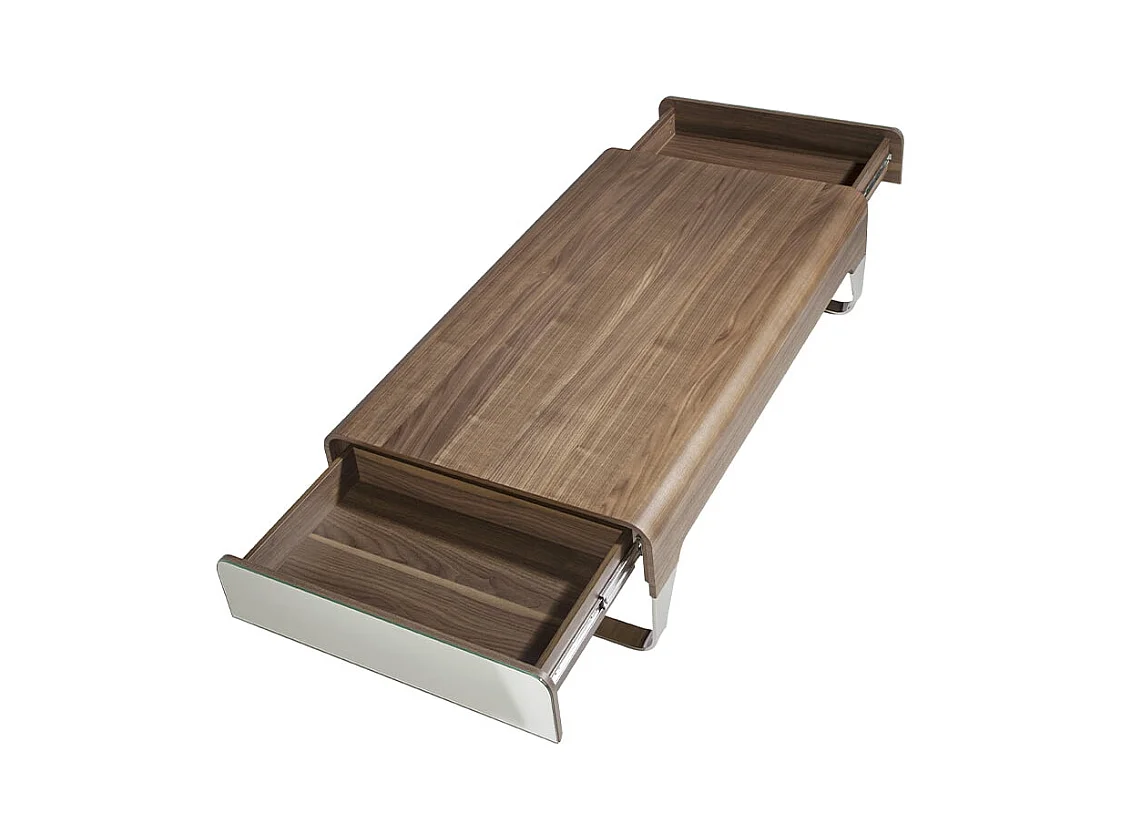 Prostokątny stolik kawowy z orzecha włoskiego i chromowanej stali 2001 ANGEL CERDA
