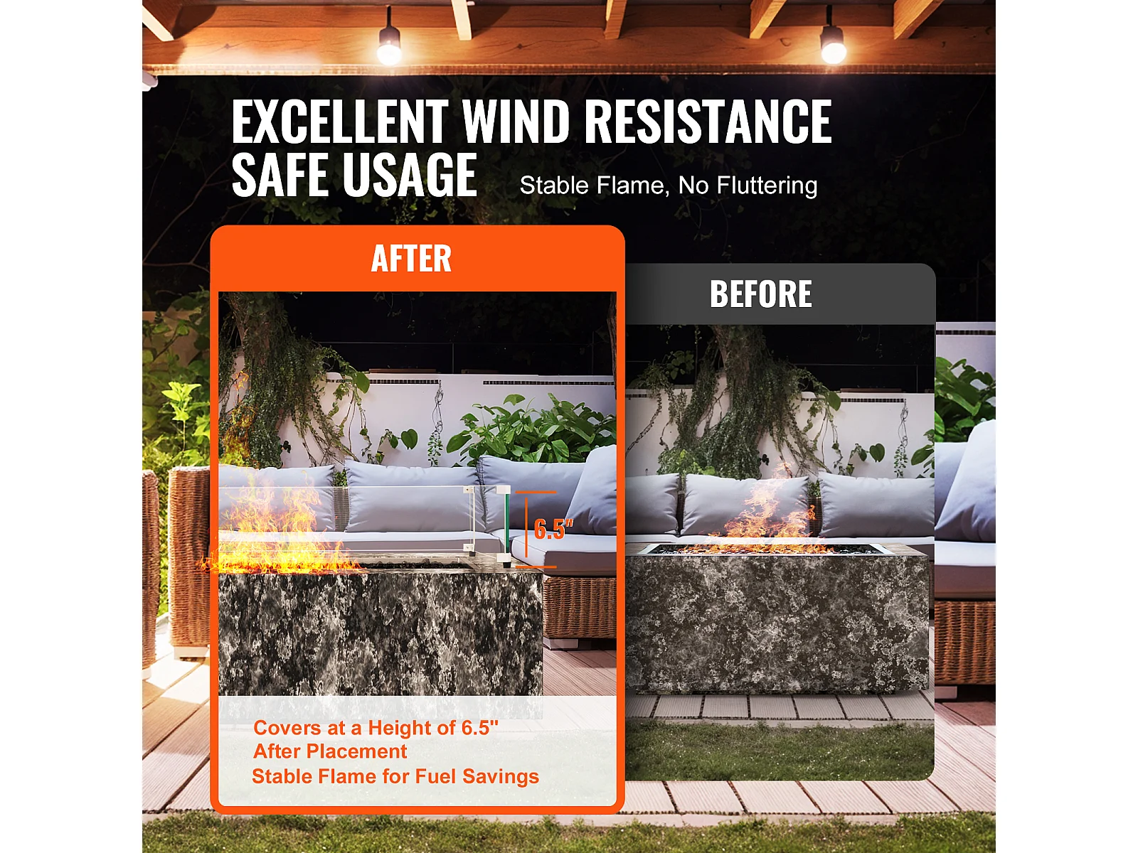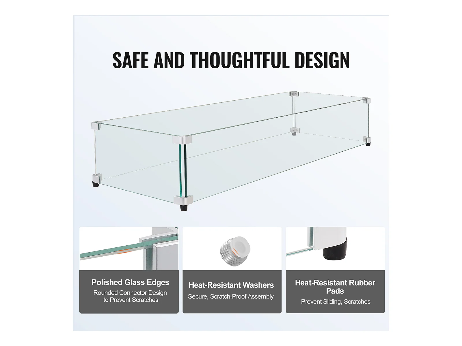 Przednia Szyba SucceBuy Osłona Przeciwwiatrowa ze Szkła Hartowanego do Kominka 798 x 317 x 165 mm, Grubość Osłony 8 mm