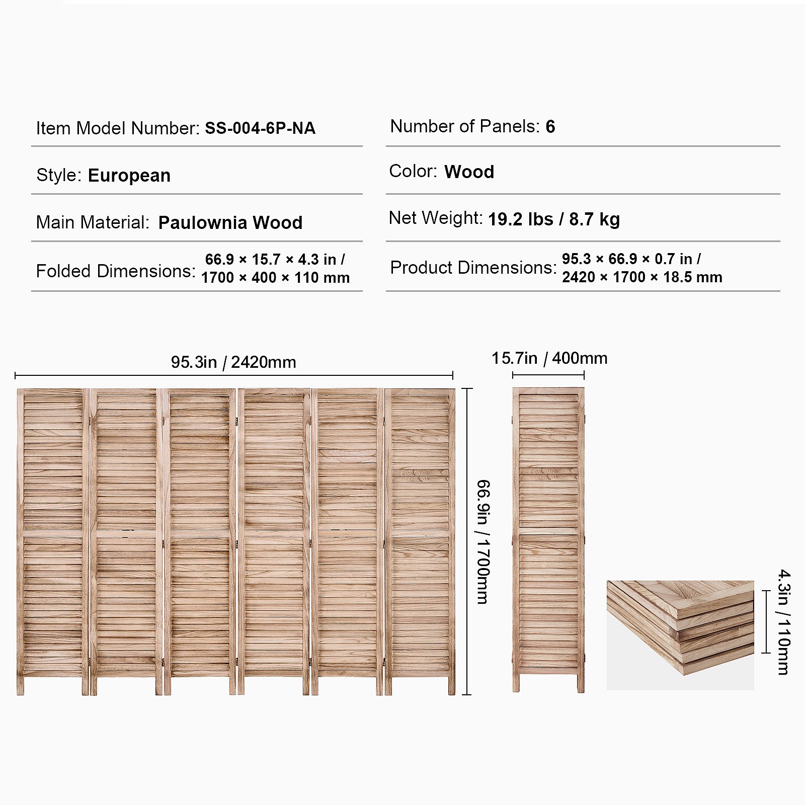 Przegroda Pokojowa, SucceBuy 6-Panelowa Przenośna Drewniana Przegroda Pokojowa