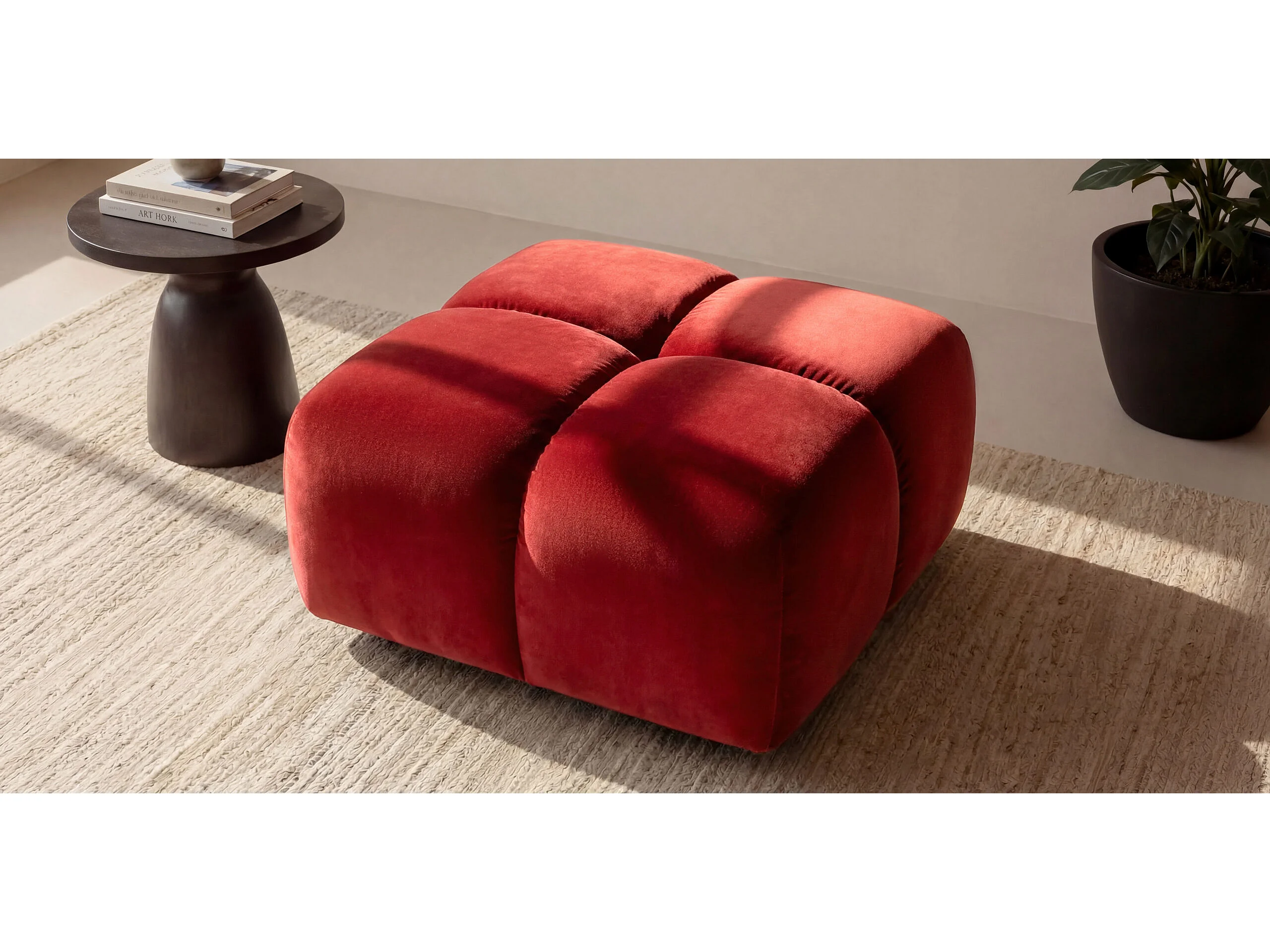 Pufa, podnóżek, tkanina welurowa Bluvel, Bordowy, Averro