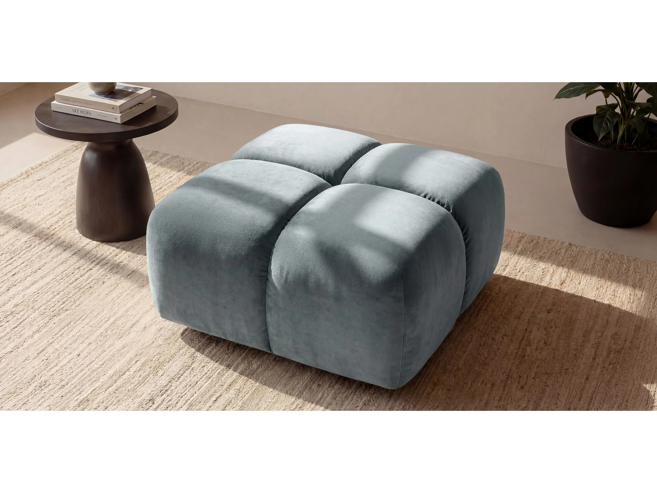 Pufa, podnóżek, tkanina welurowa Bluvel, Niebieskoszary, Averro