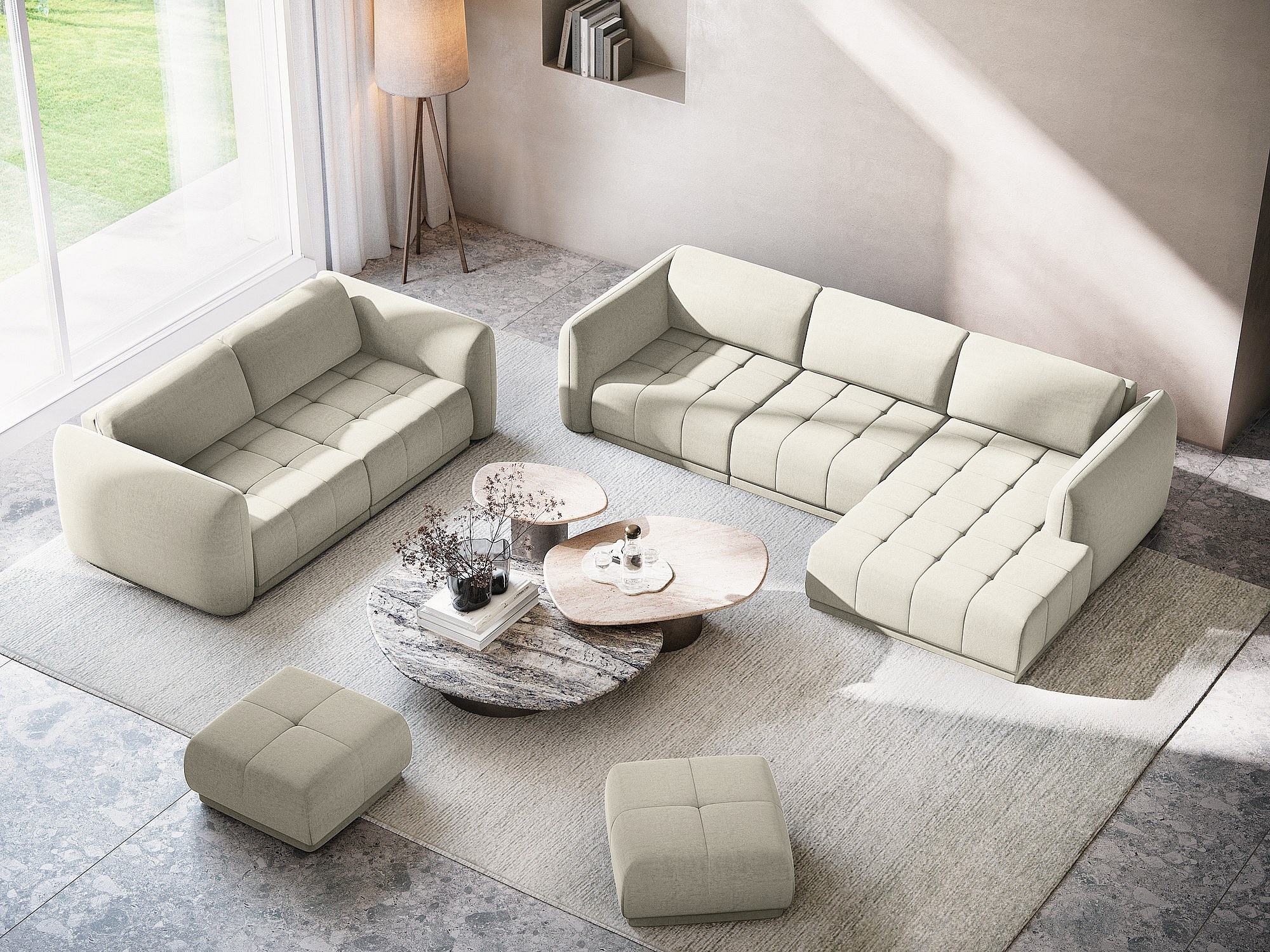 Pufa - z tkaniny strukturalnej - jasny beż - KAPUA