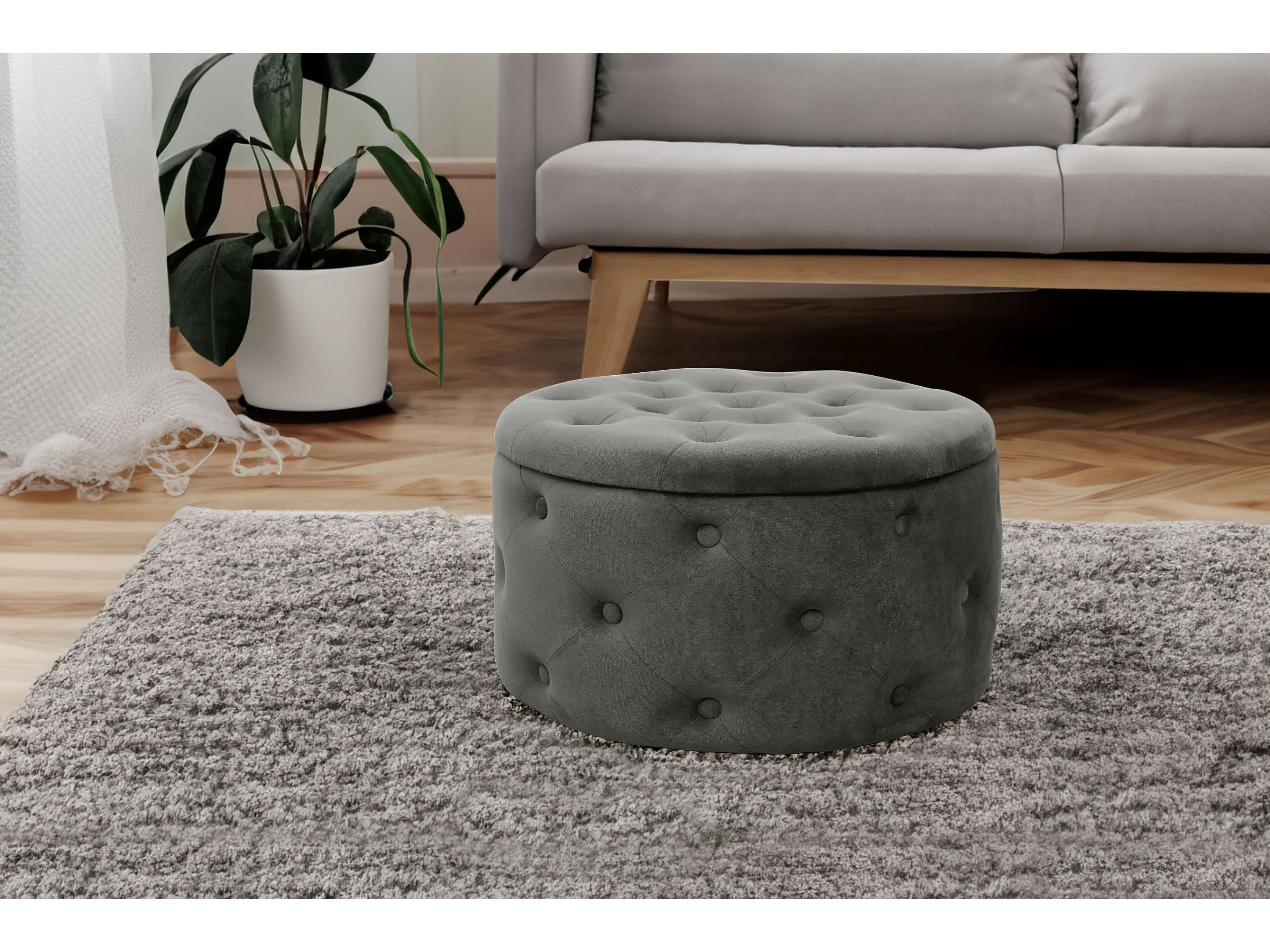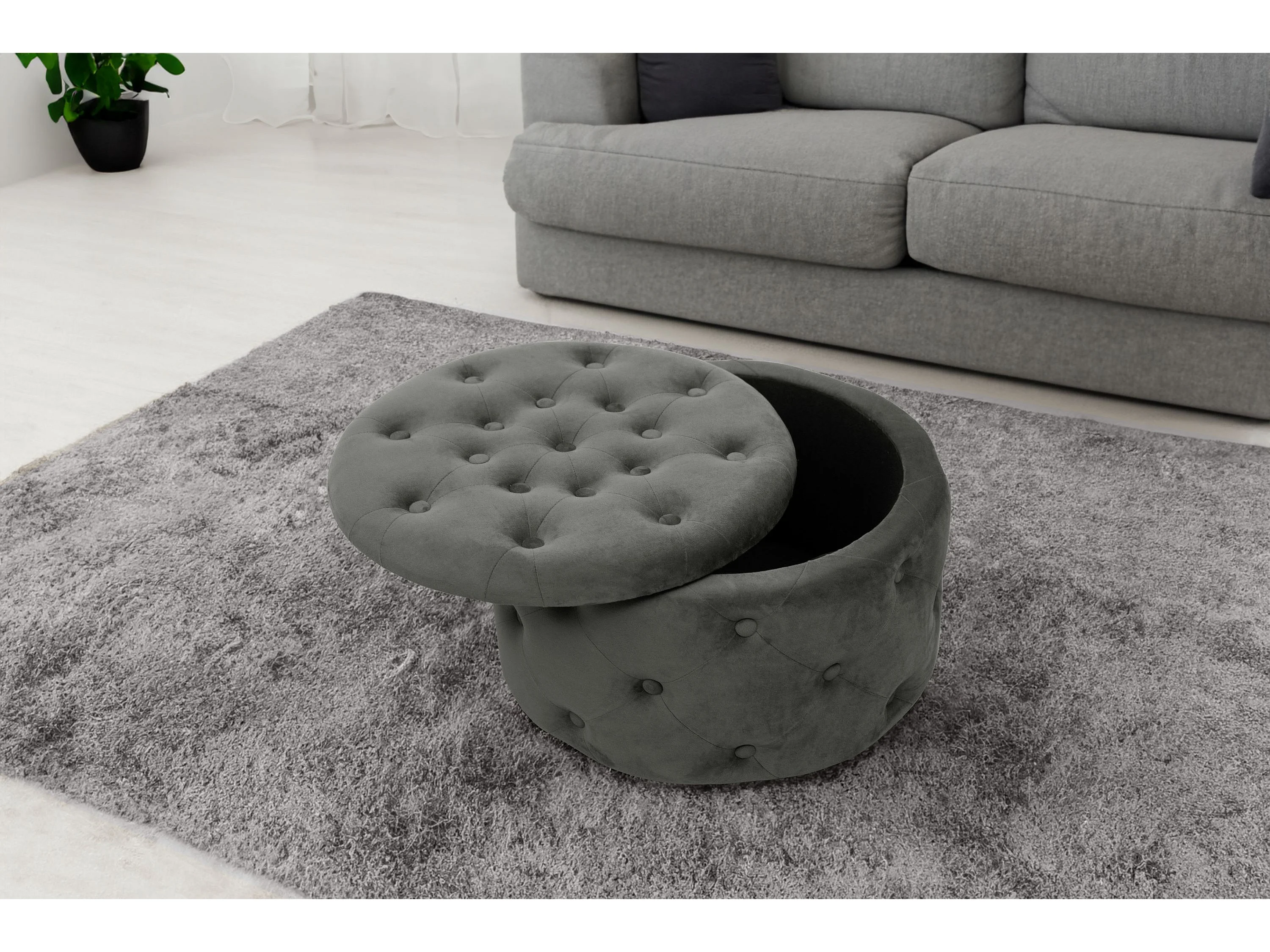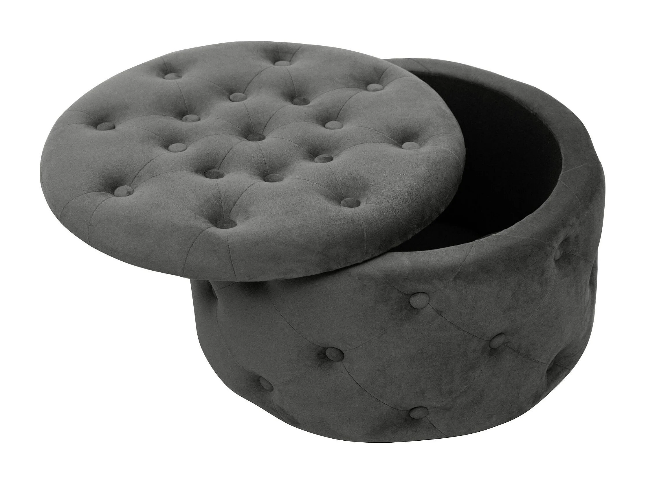 Pufa ze schowkiem okrągła welurowa pikowana AKORD ALIA Szara