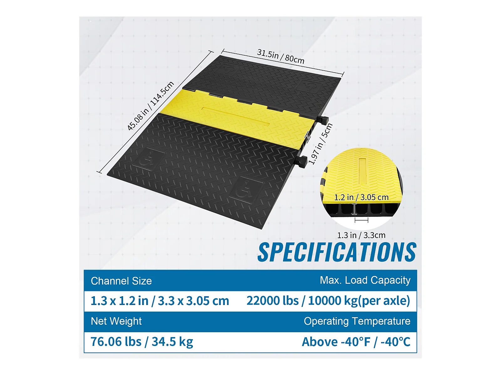 Rampa Ochronna Kabeli z 5 Kanałami SucceBuy, Pojemność Obciążenia 9979 kg, Ukrywacz Kabeli