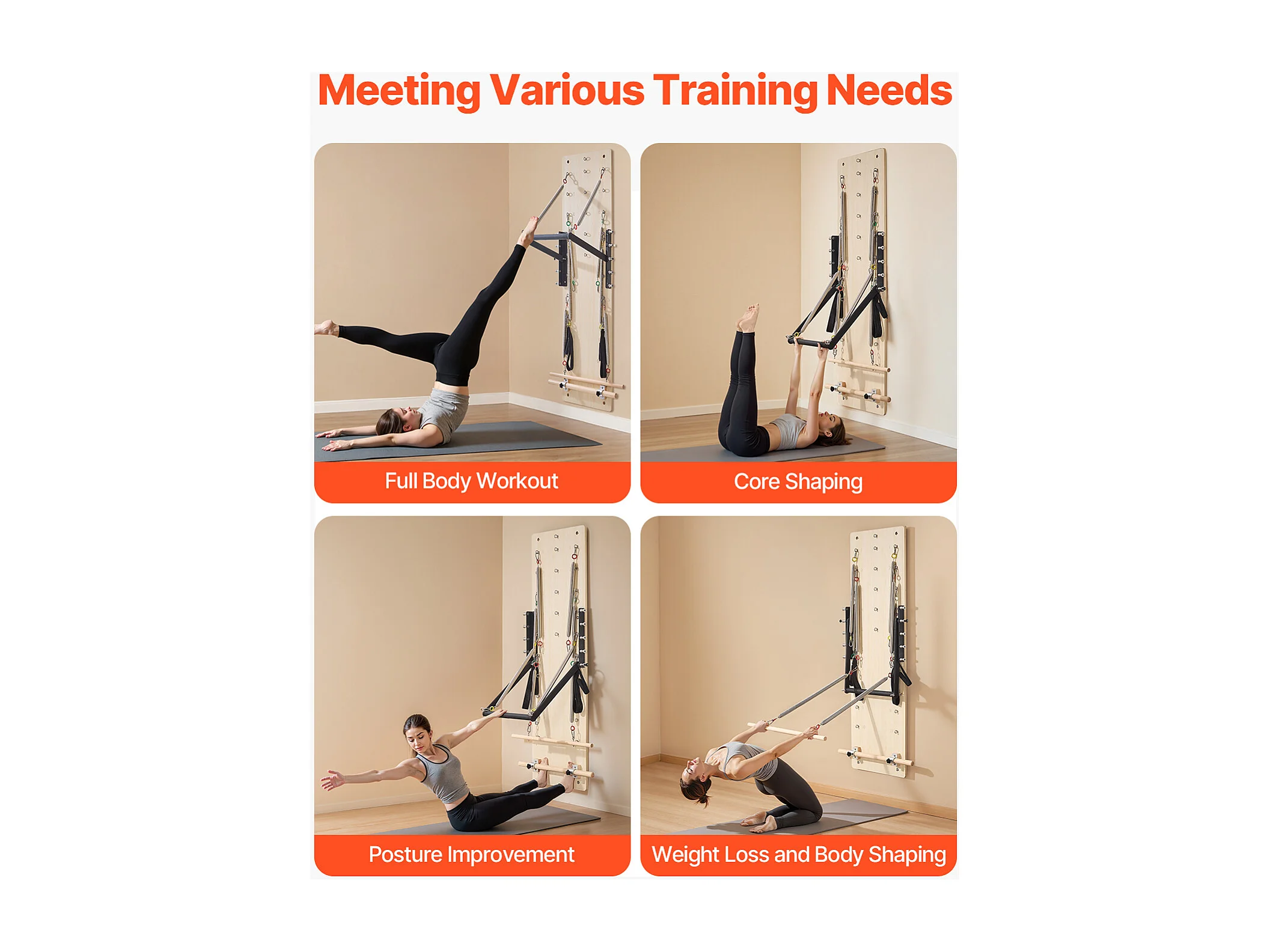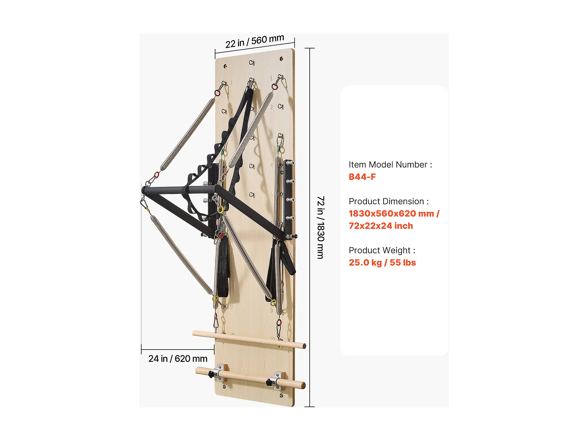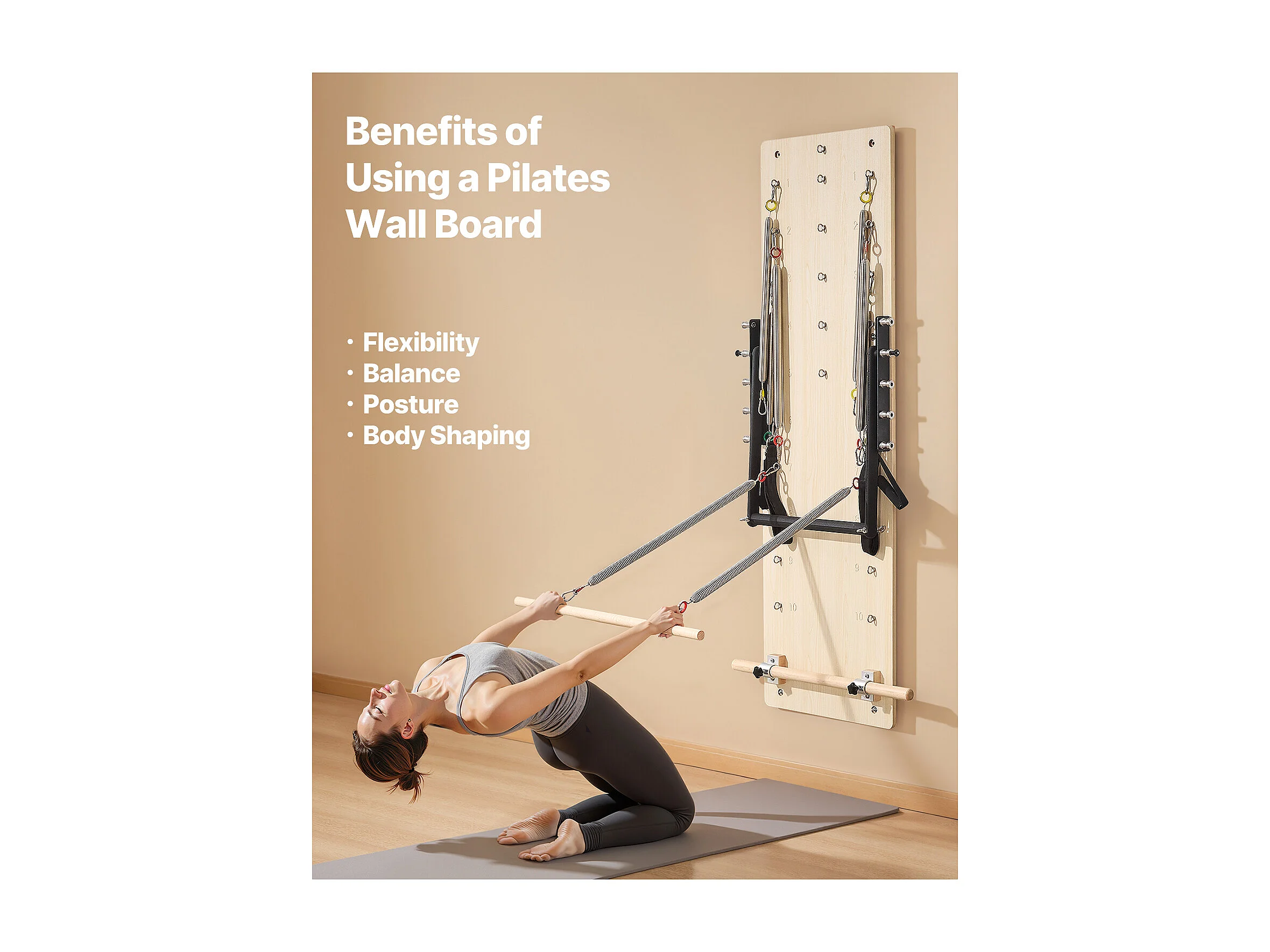 Reformer Ścienny do Pilatesu SucceBuy, Trampolina do Pilatesu z Drewna Klonowego, Sprzęt do Ćwiczeń ze Sprężynami Oporowymi, do Domowej Siłowni