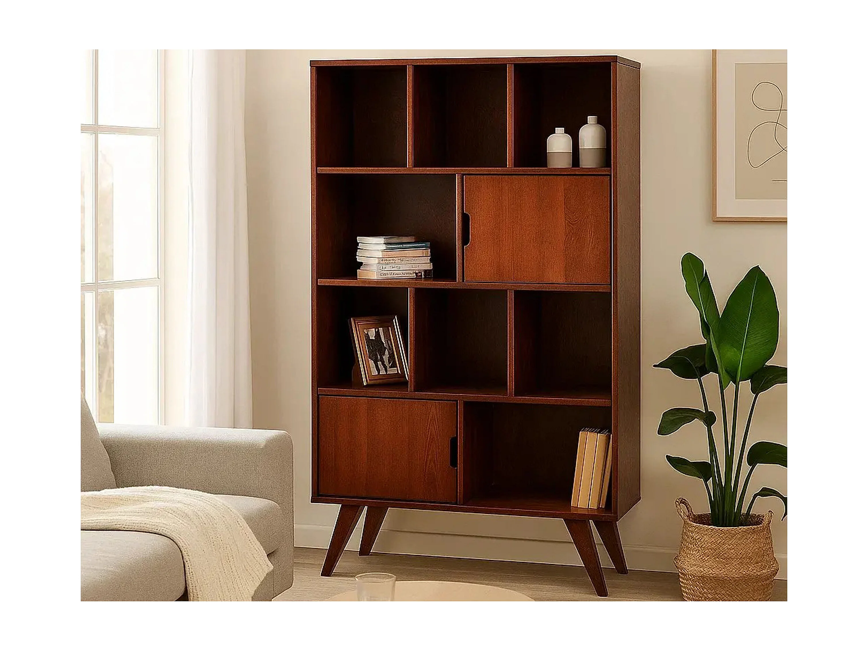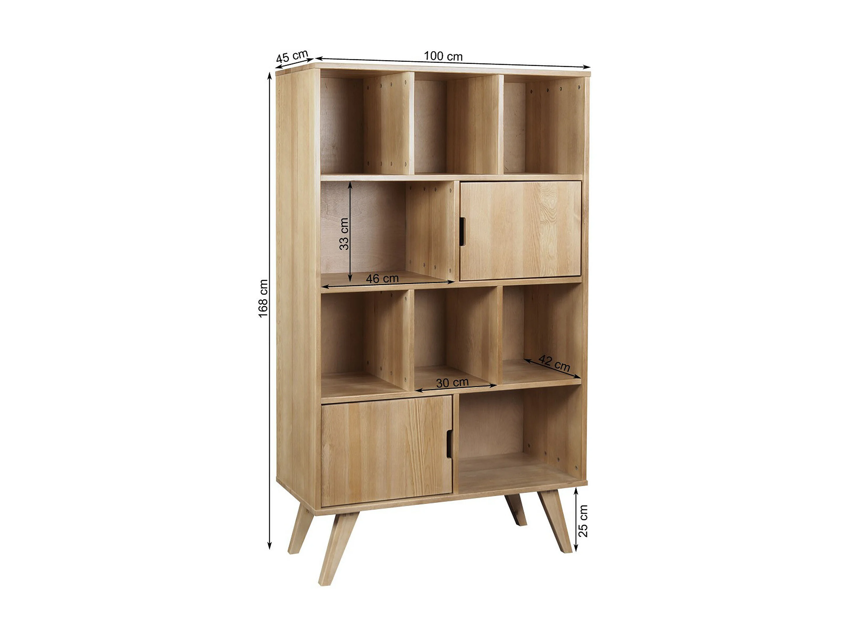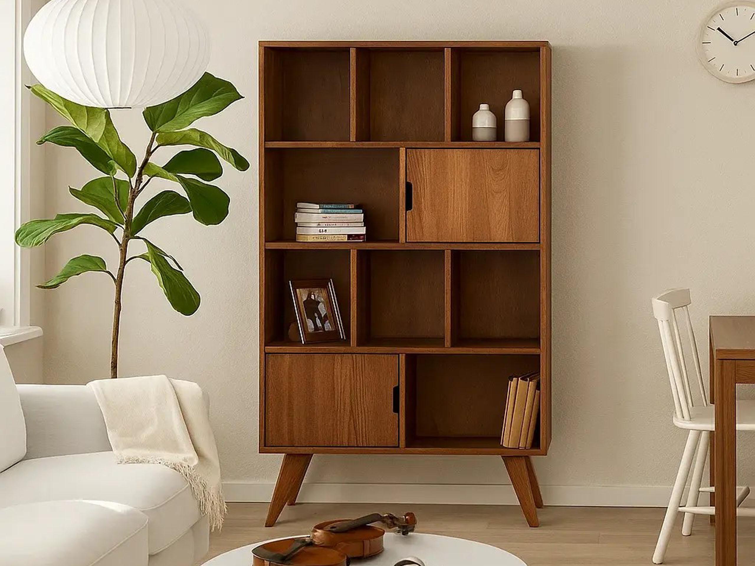 Regał 168x100 Malmo drewniany skandynawski, 8 półek, kolor kasztan