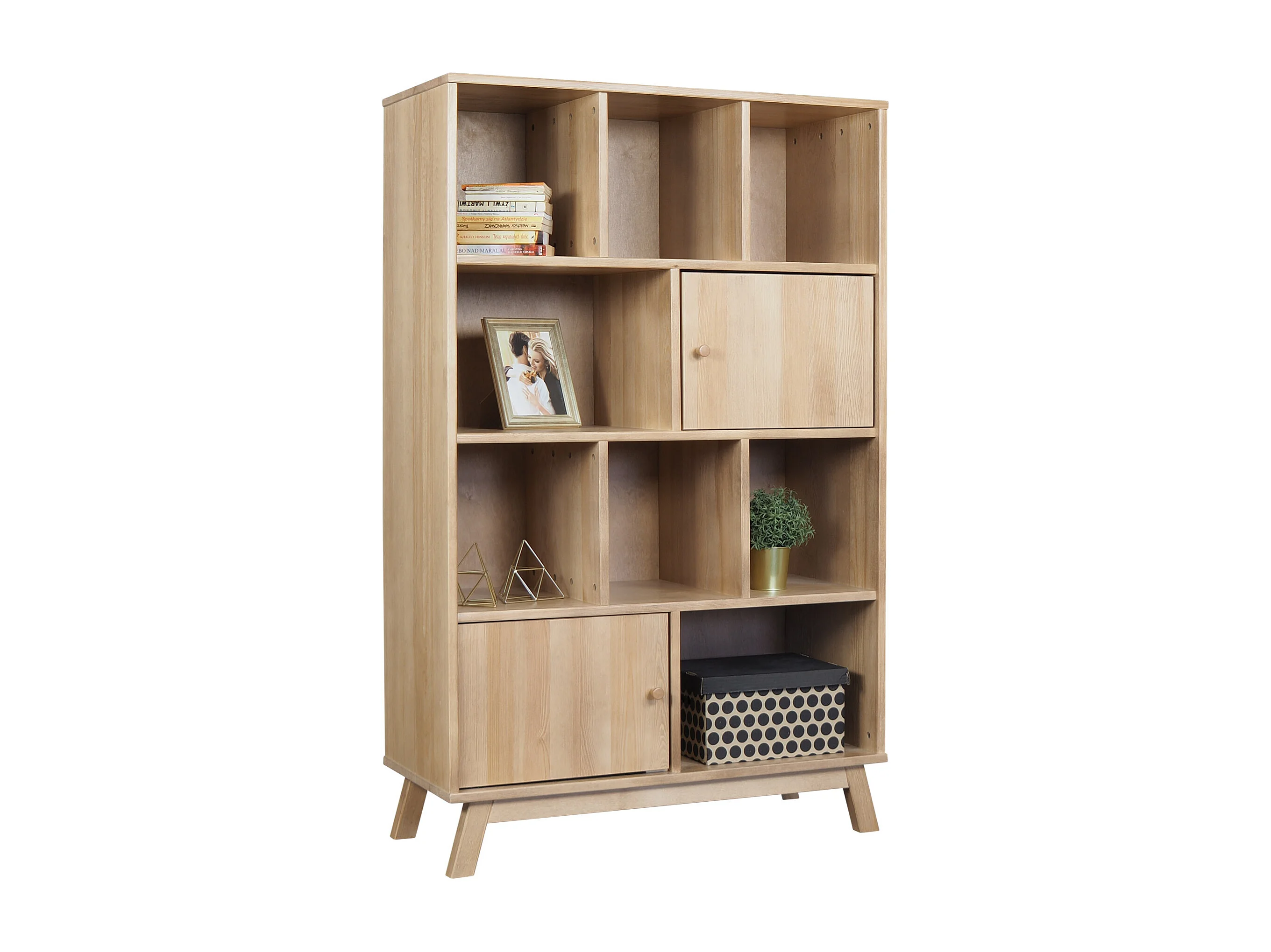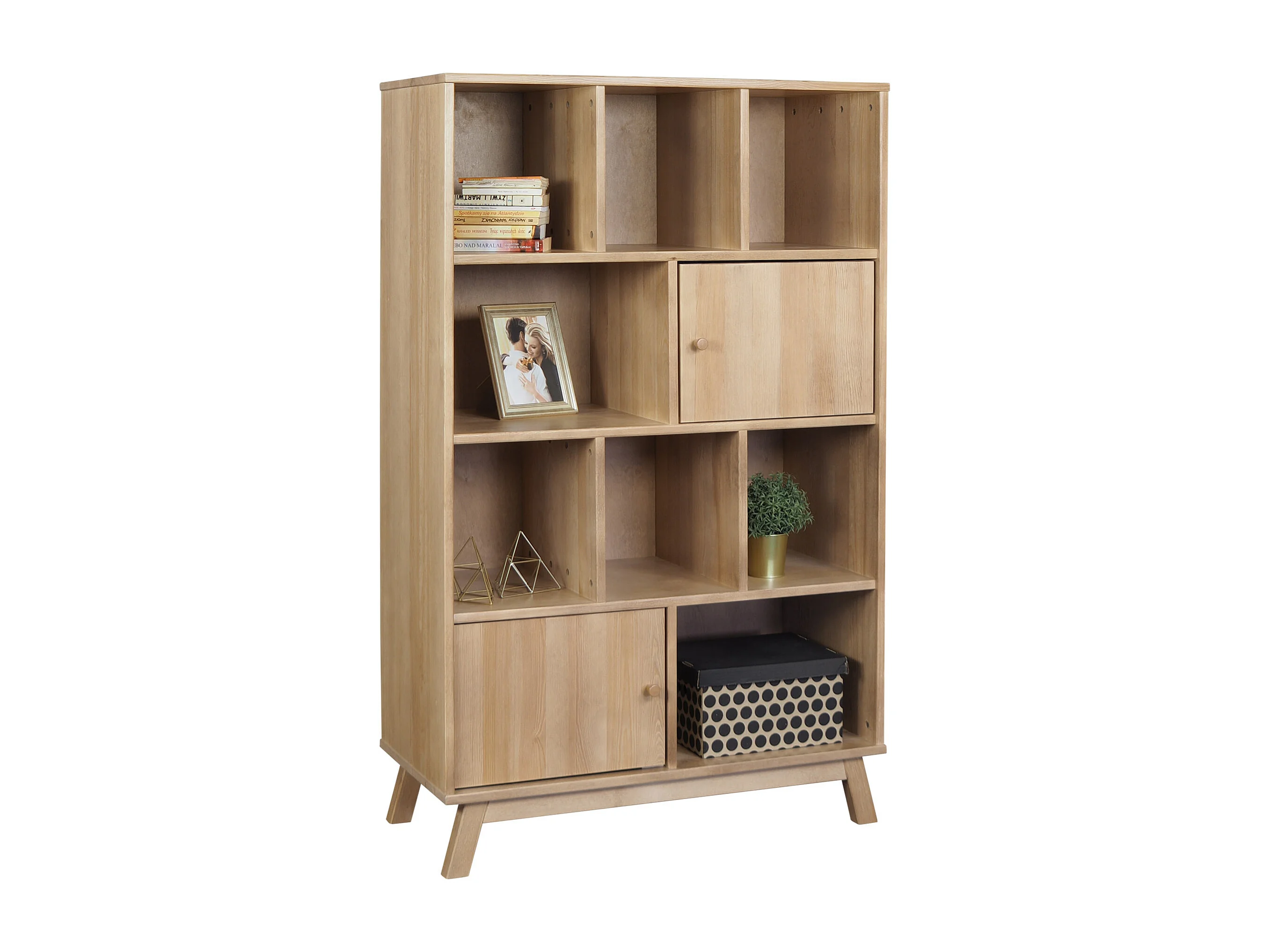 Regał drewniany 200 x 110 z drzwiczkami i półkami Madison, kolor dębowy