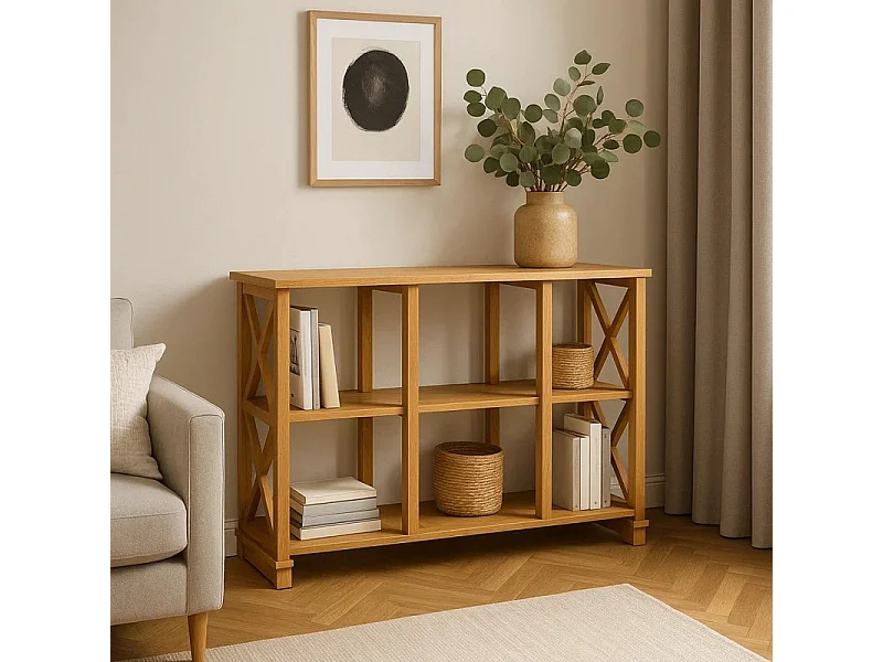 Regał drewniany Retro I prowansalski z krzyżami i półkami, kolor dębowy