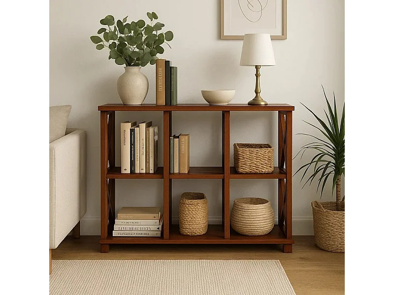 Regał drewniany Retro I prowansalski z krzyżami i półkami, kolor kasztan