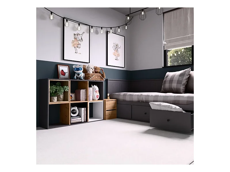 Regał Malax 2X3 | Antracyt/ Dąb Artisan | 110x30x75 cm | Regał do przechowywania