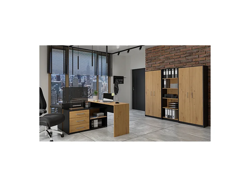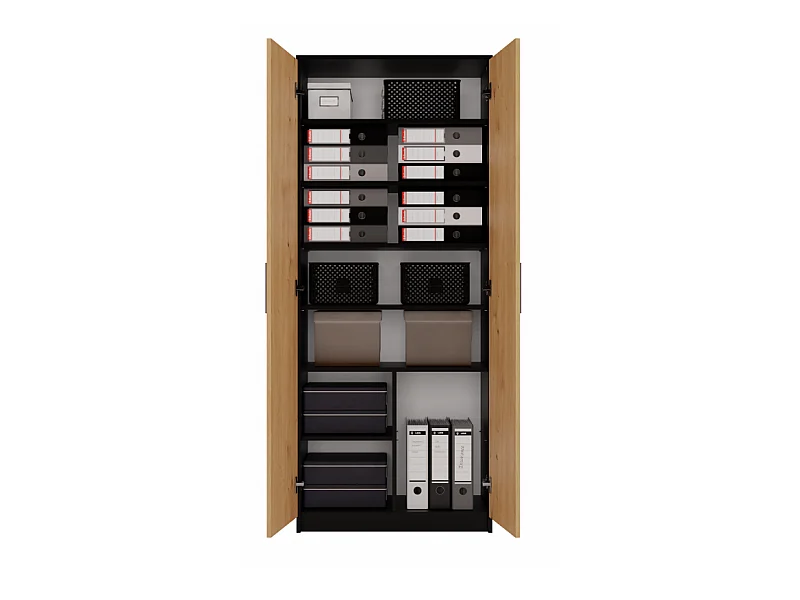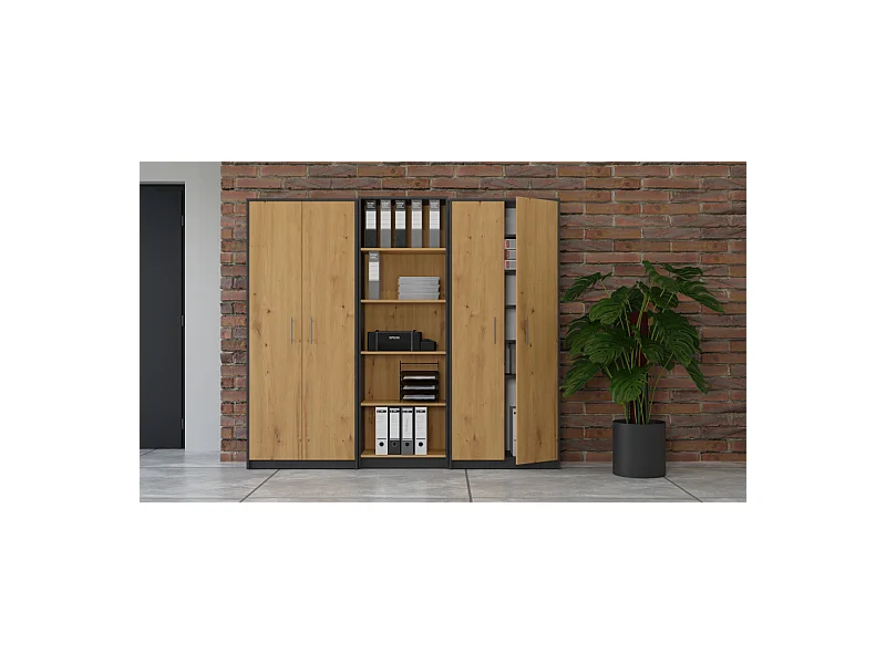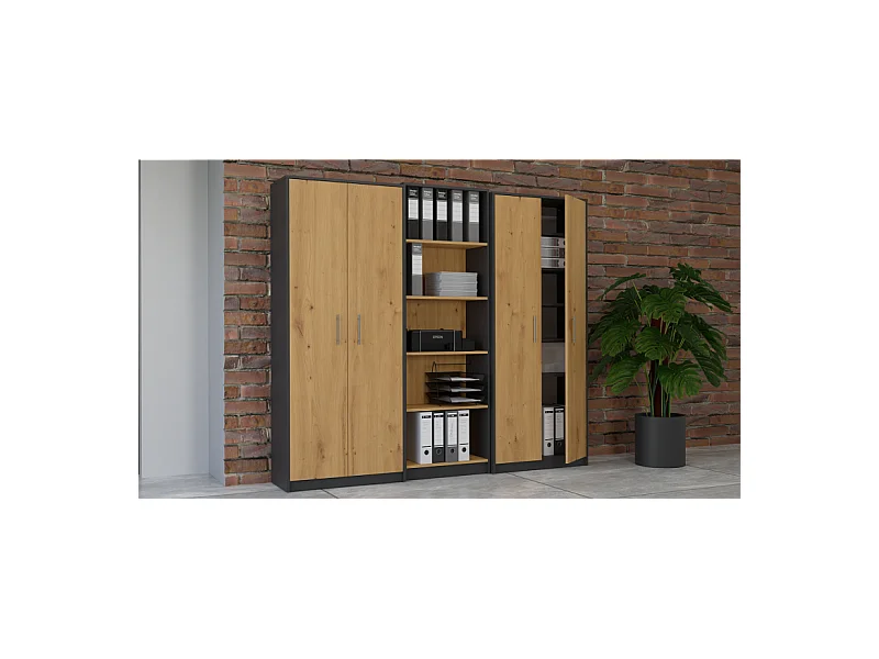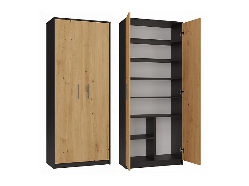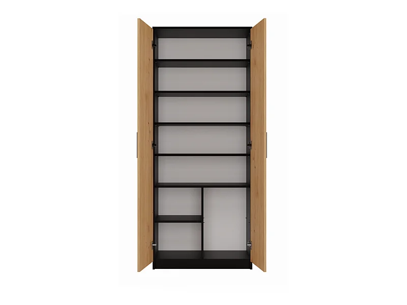 Regał Oliv 2D | Antracyt/Dąb Artisan | 74x35x180 cm | Regał Zamykany, 2 Drzwi, 8 Półek