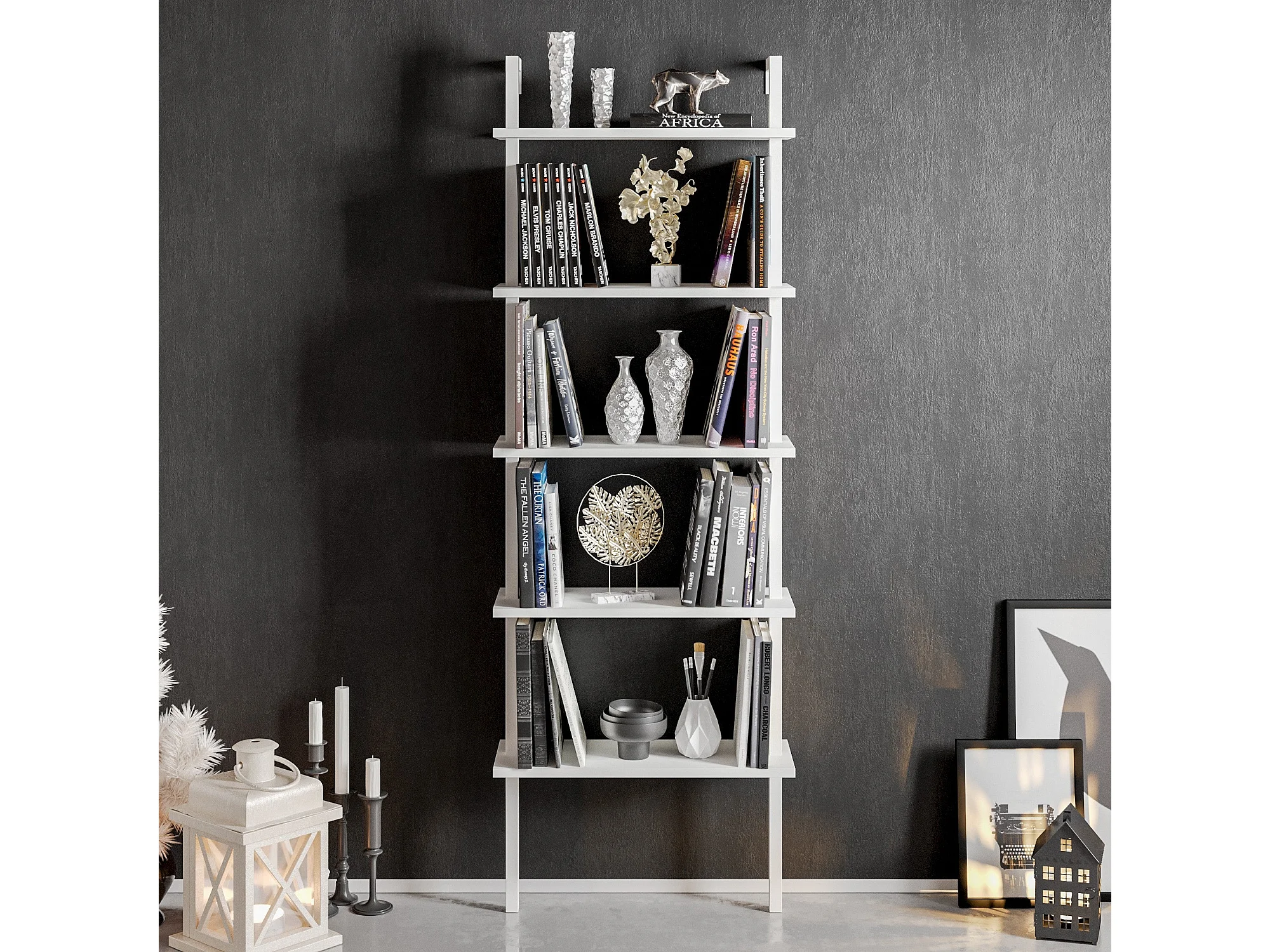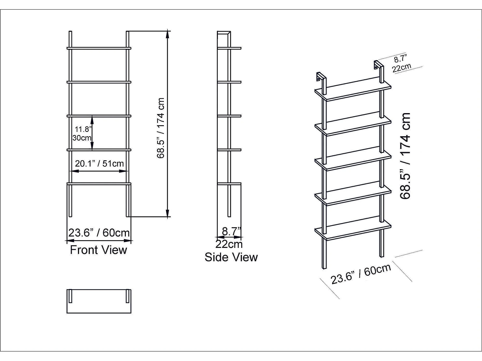 Regał w stylu skandynawskim, biały, 60 x 174 x 22 cm | Płyta wiórowa pokryta melaminą w 100%, grubość 18 mm, nogi metalowe | Możliwość monta