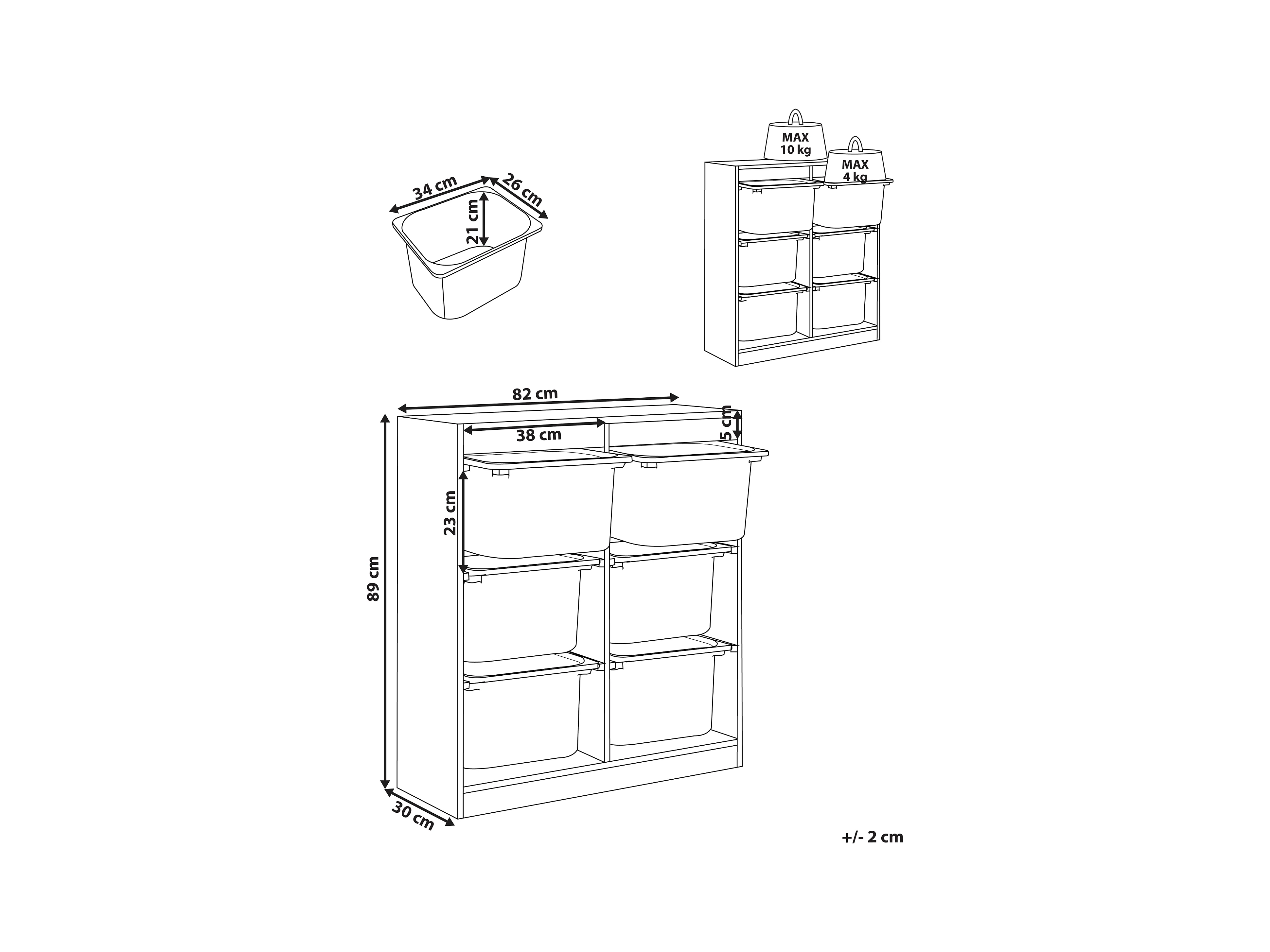 Regał z 6 pojemnikami TOBIN MDF Biały