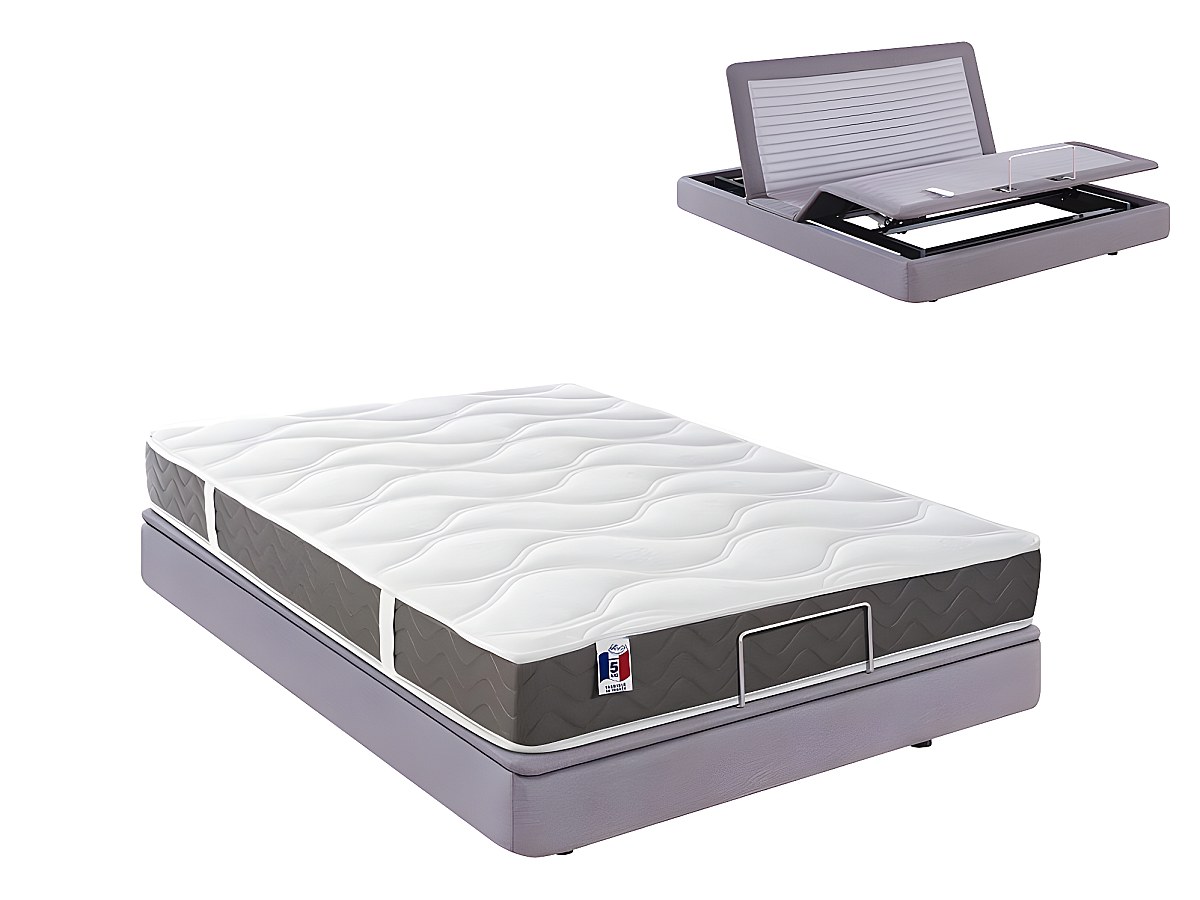 Relaksacyjne łóżko elektryczne jednoczęściowe PASIPHAE DREAMEA – 5-strefowy materac 100% lateks – kolor szary – 140 × 190 cm