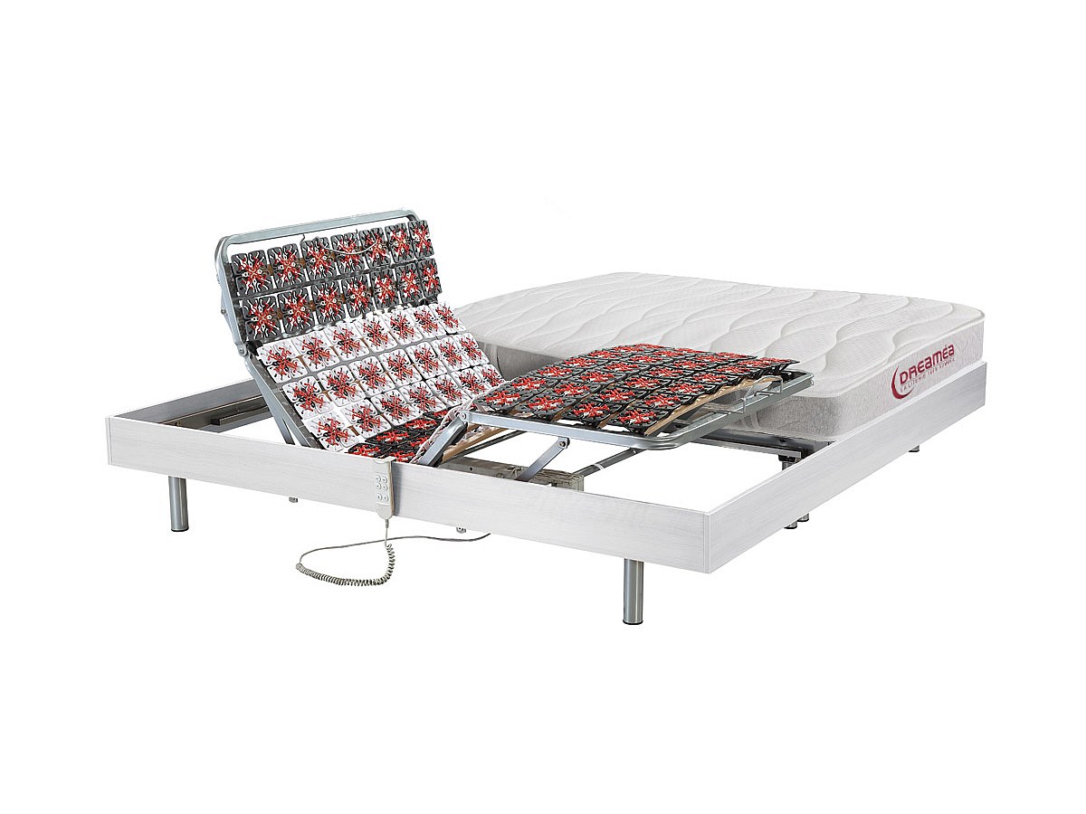Relaksacyjne łóżko elektryczne LAODICE marki DREAMEA z płytkami oraz materacem z lateksową warstwą wierzchnią – silniki OKIN – kolor biały – 2 × 80 × 200 cm