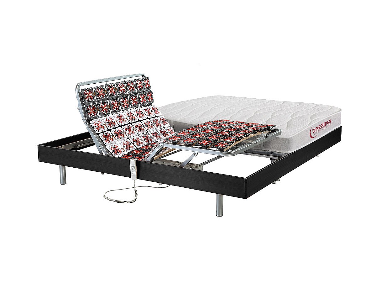 Relaksacyjne łóżko elektryczne LAODICE marki DREAMEA z płytkami oraz materacem z lateksową warstwą wierzchnią – silniki OKIN – kolor czarny – 2 × 80 × 200 cm