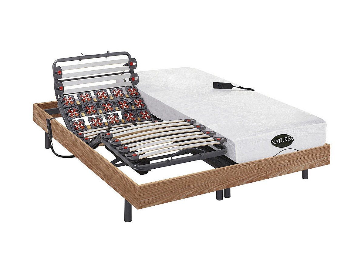 Relaksacyjne łóżko elektryczne z listewek i płytek materac z pianki z pamięcią kształtu i z bambusa DAMYSOS NATUREA - silniki OKIN - 2x80x200 cm - Kolor dębowy