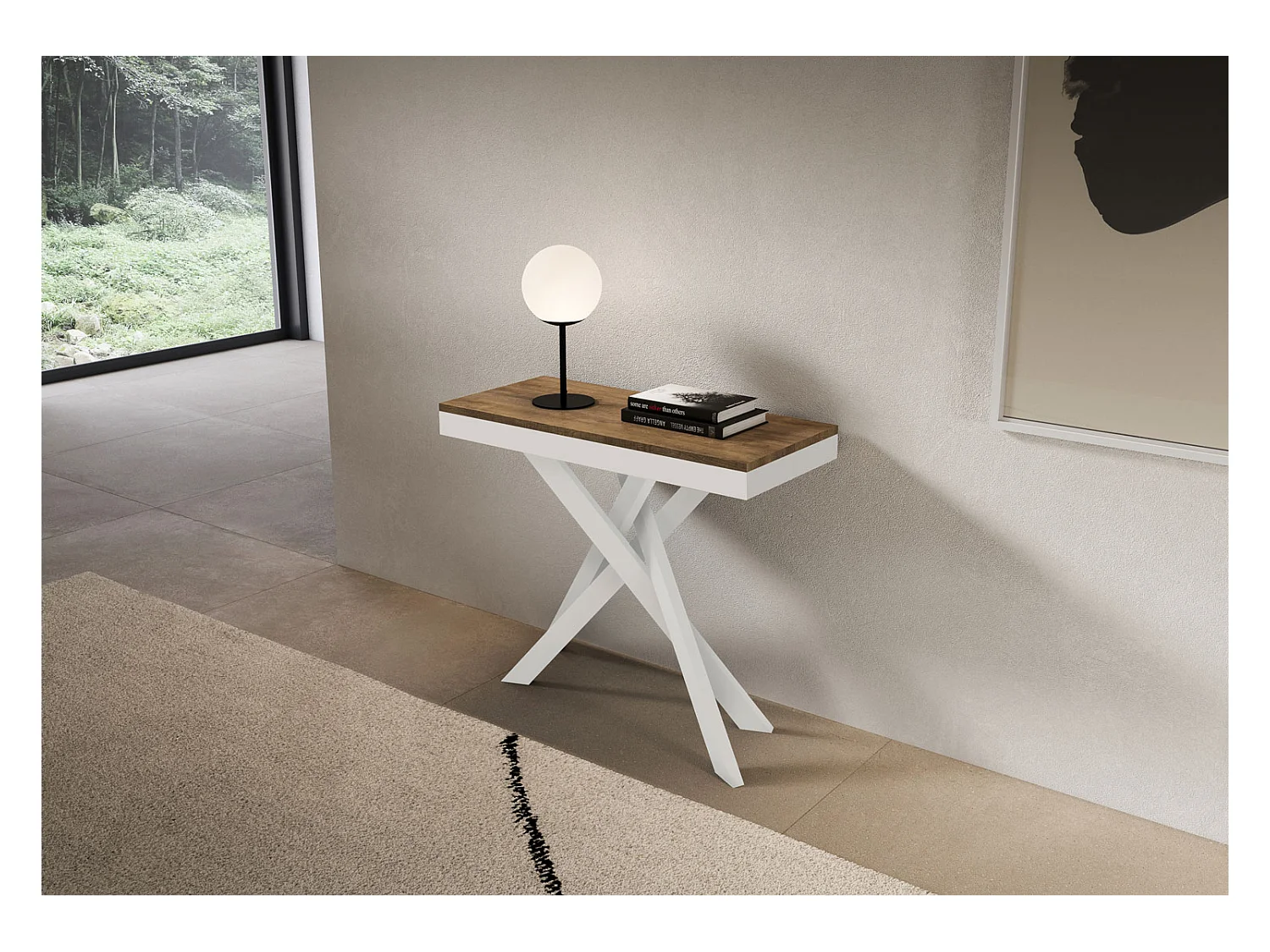 Konsola rozkładana 90x40/196 cm Saki Small Evolution orzech biały rama