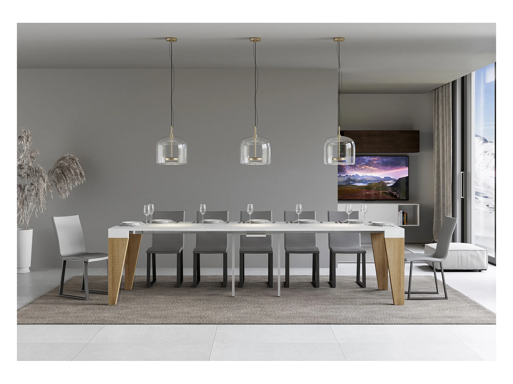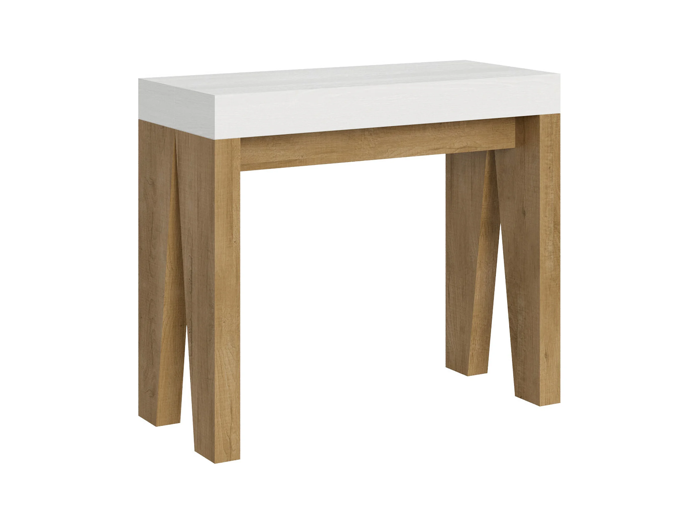 Konsola rozkładana 90x40/300 cm Naxy Mix top Biały Jesion - struktura Dąb Naturalny