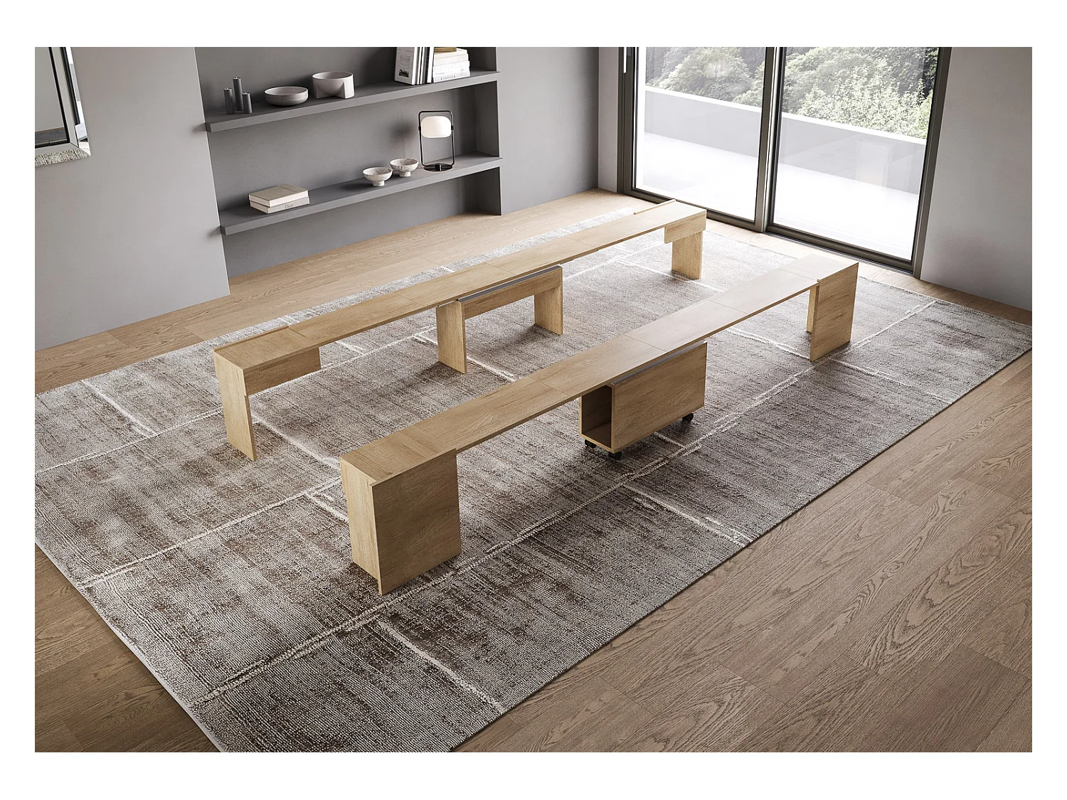 Konsola rozkładana 90x42/302 cm Evolve Dąb Natura z dolną i górną ławką
