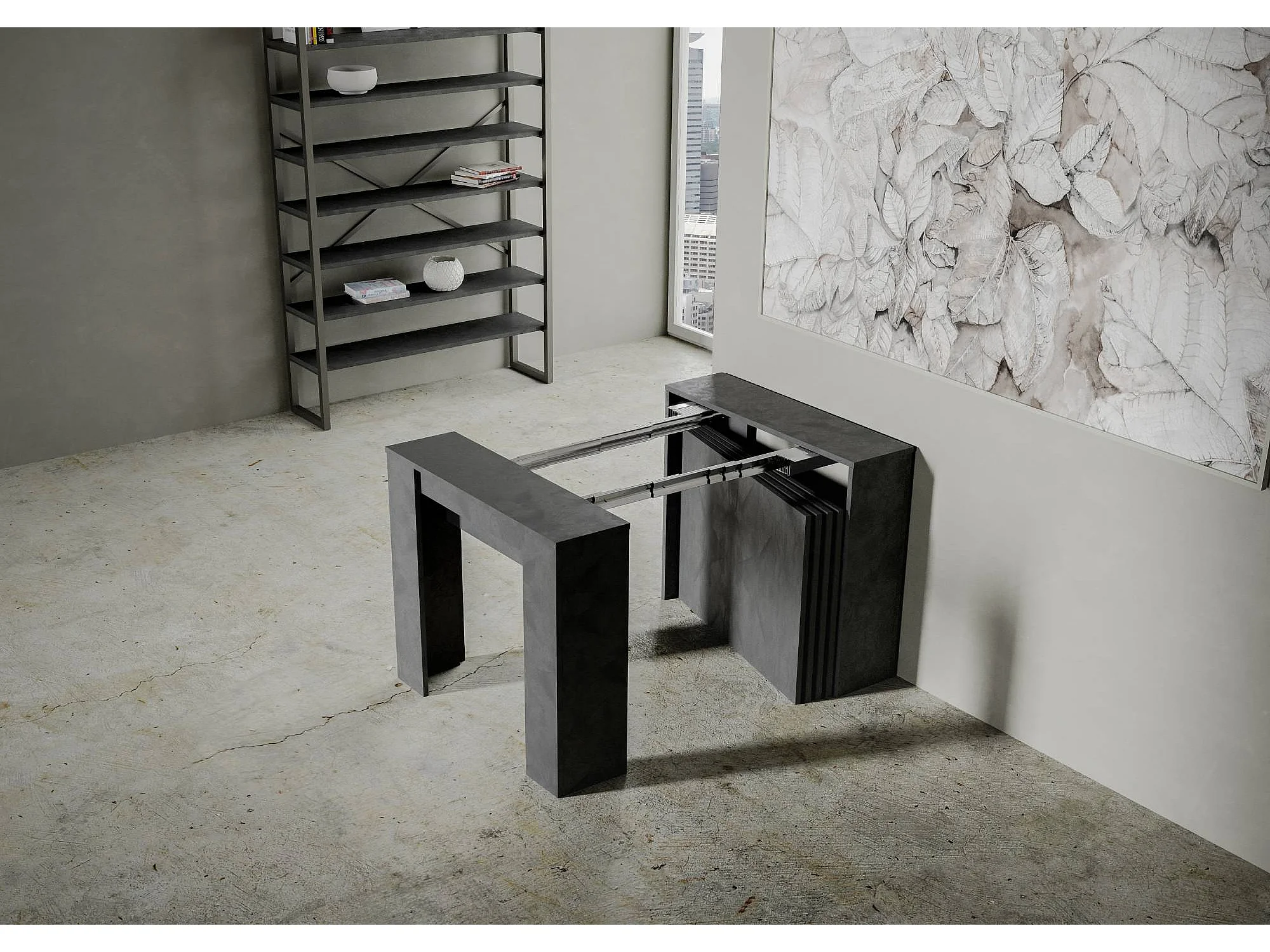 Konsola rozkładana 90x48/296 cm Venus Antracytowy efekt stucco wewnętrzne przedłużenia