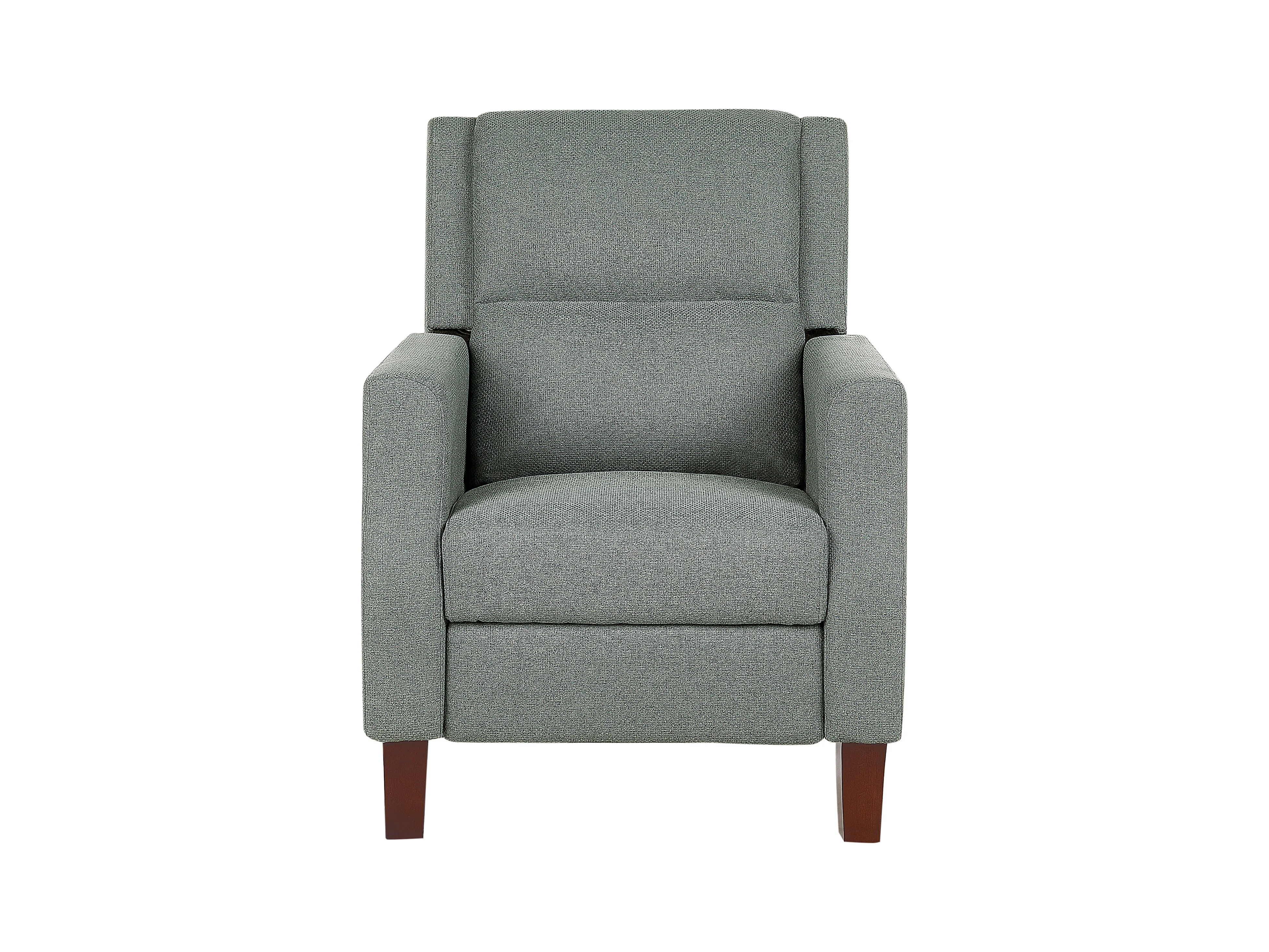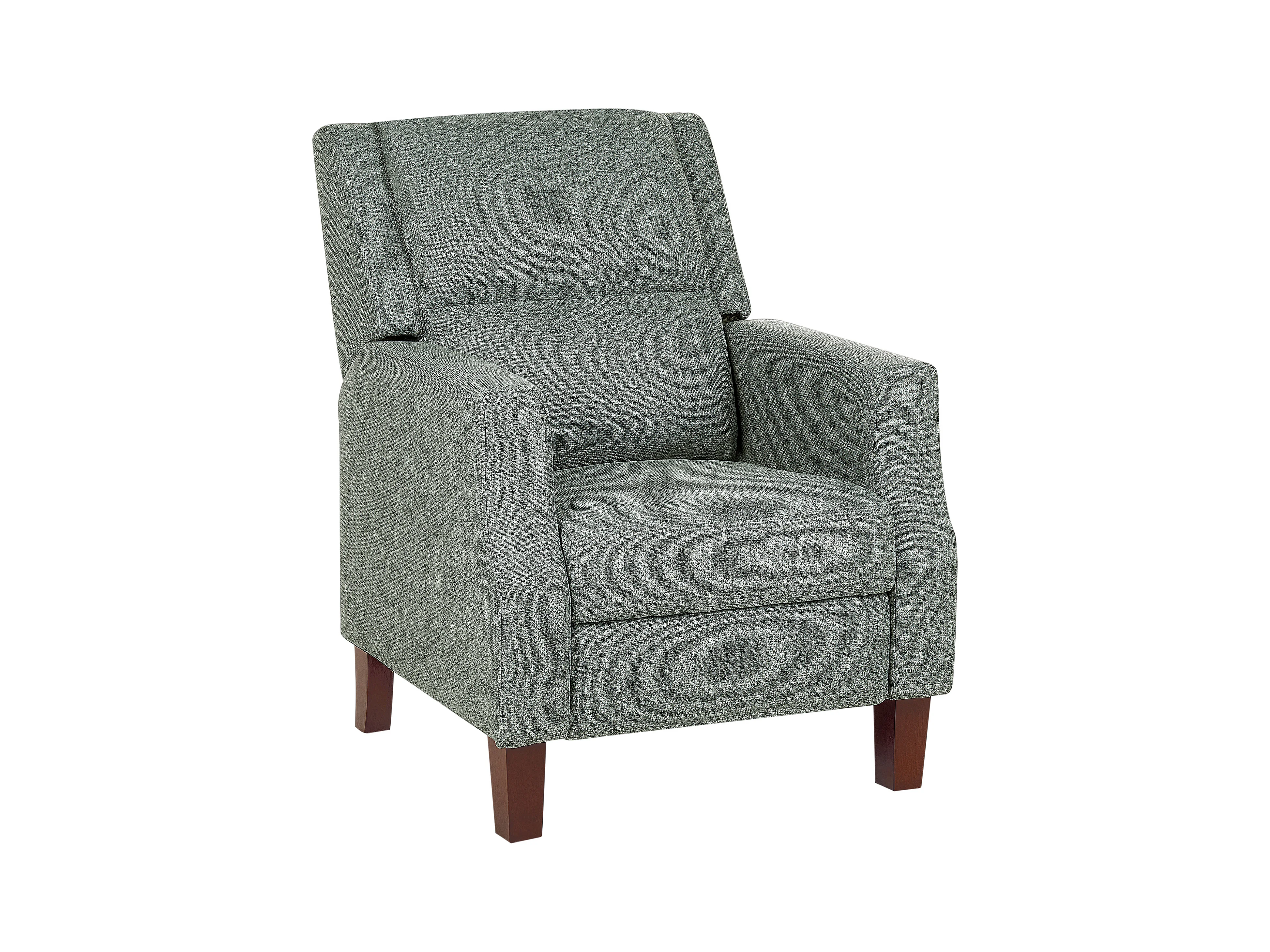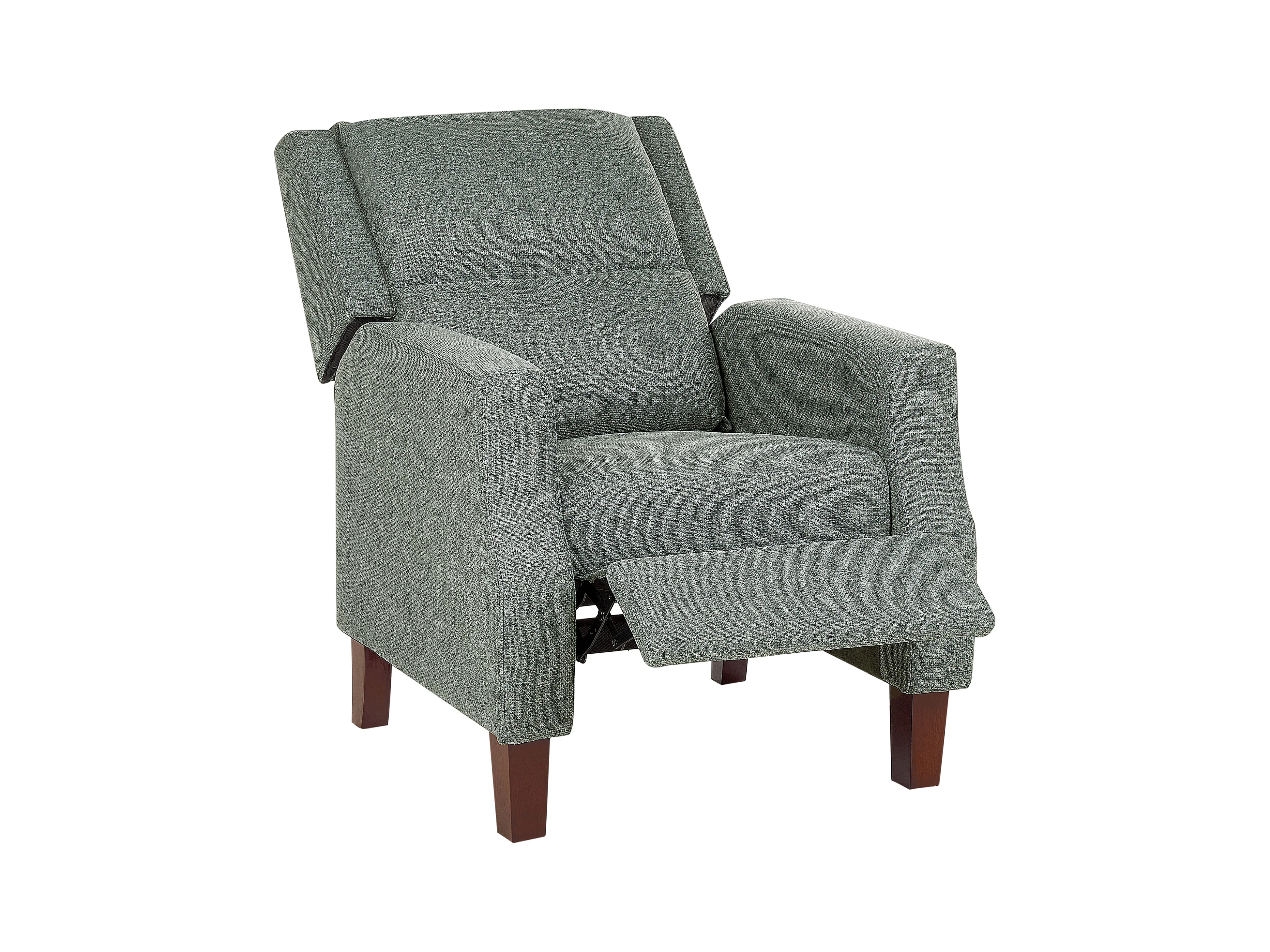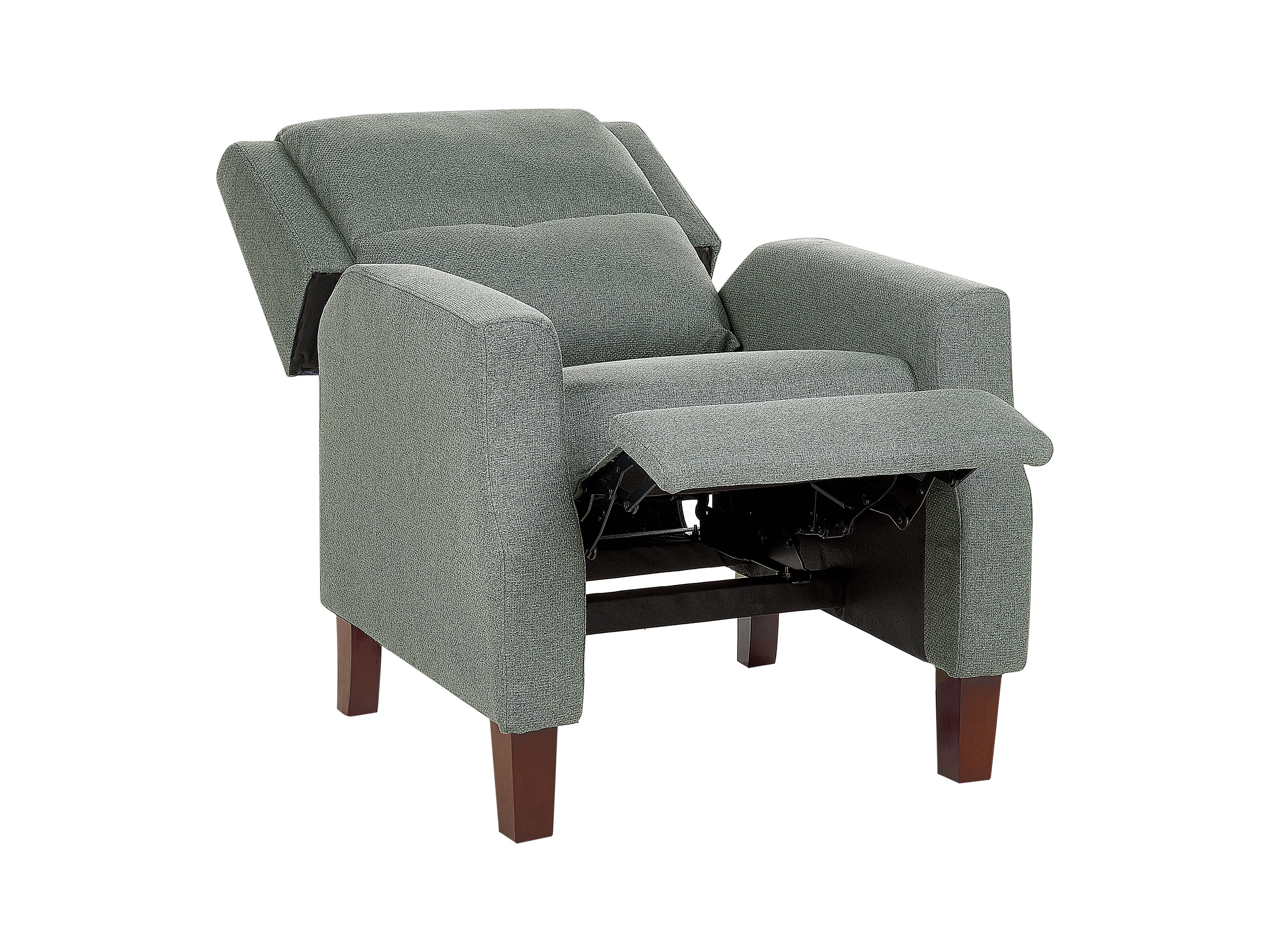 Fotel relaksacyjny w ciemnozielonym kolorze z wygodnym tkaninowym tapicerowaniem i funkcją manualnego odchylenia