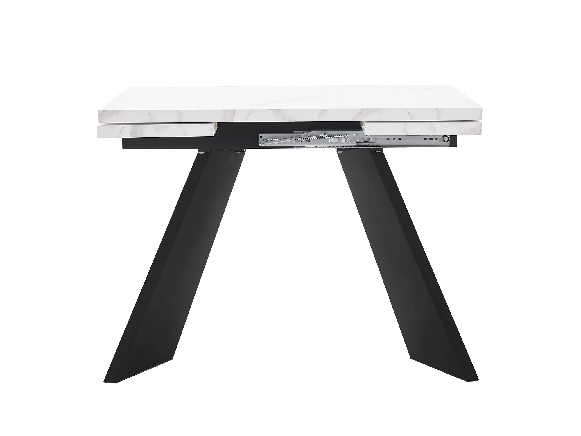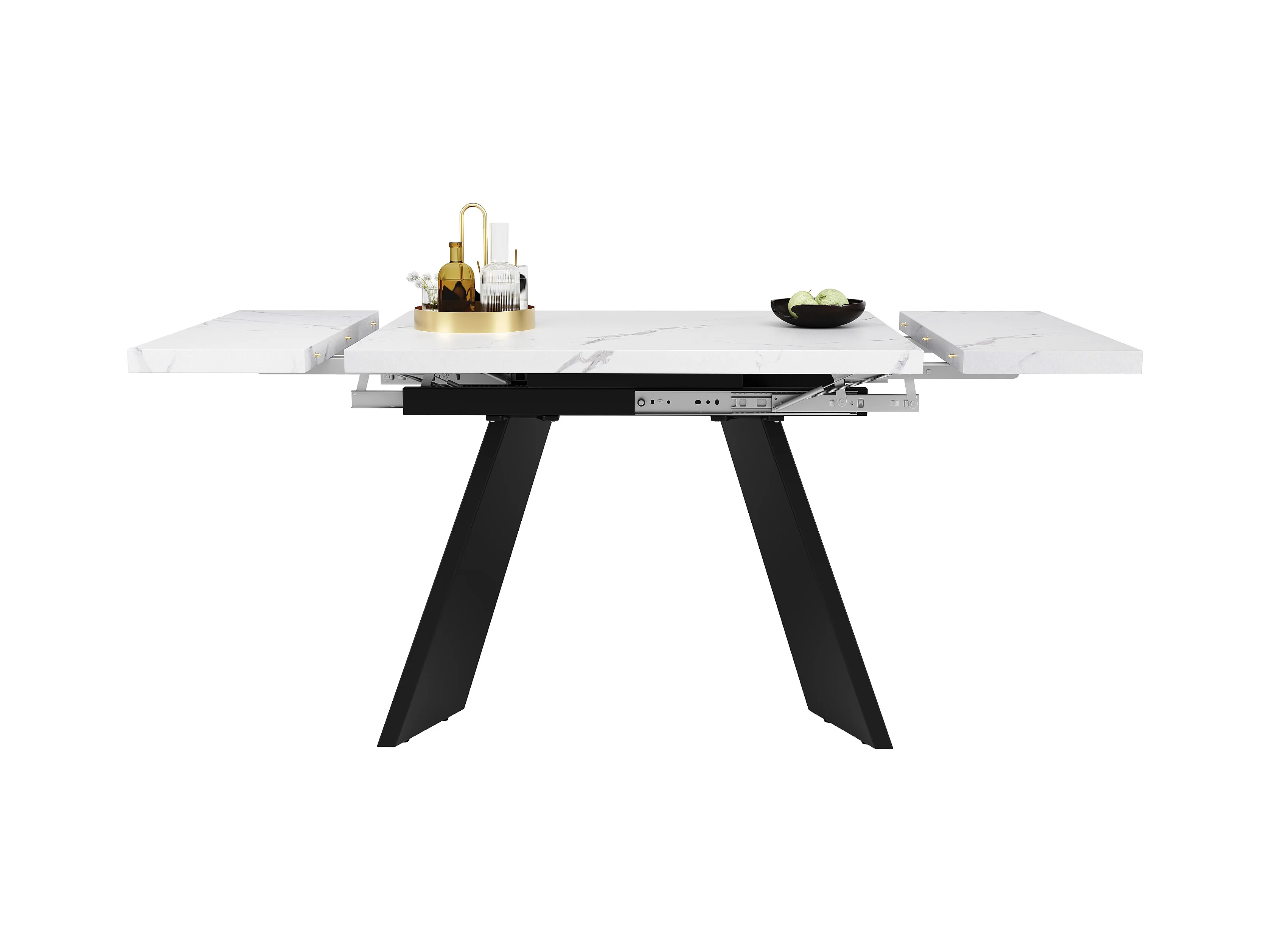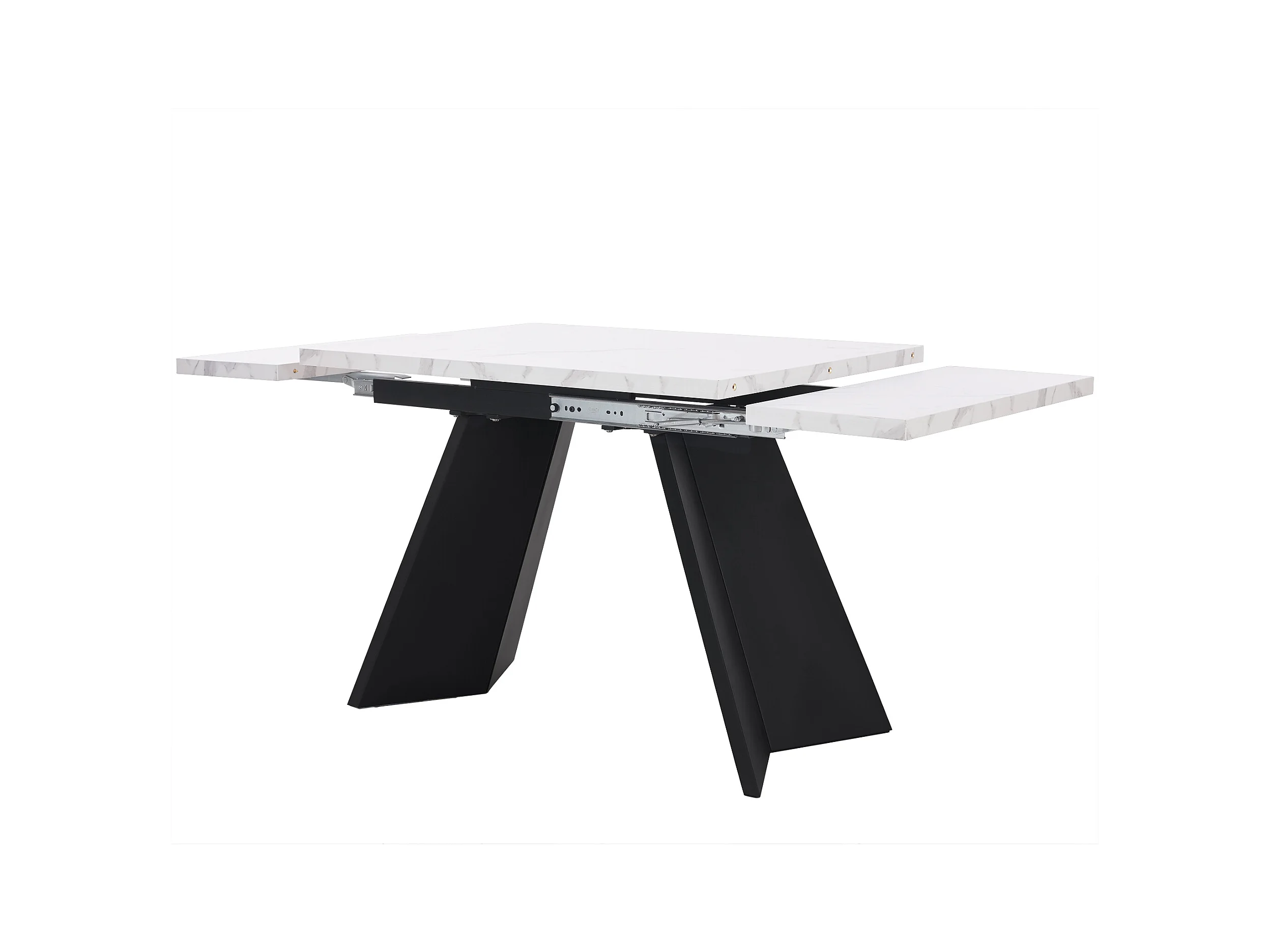 Rozkładany stół jadalny - 99-159 x 74 x 77 cm - Blat imitujący marmur - Nogi z płyty MDF i metalu - Biały + czarny