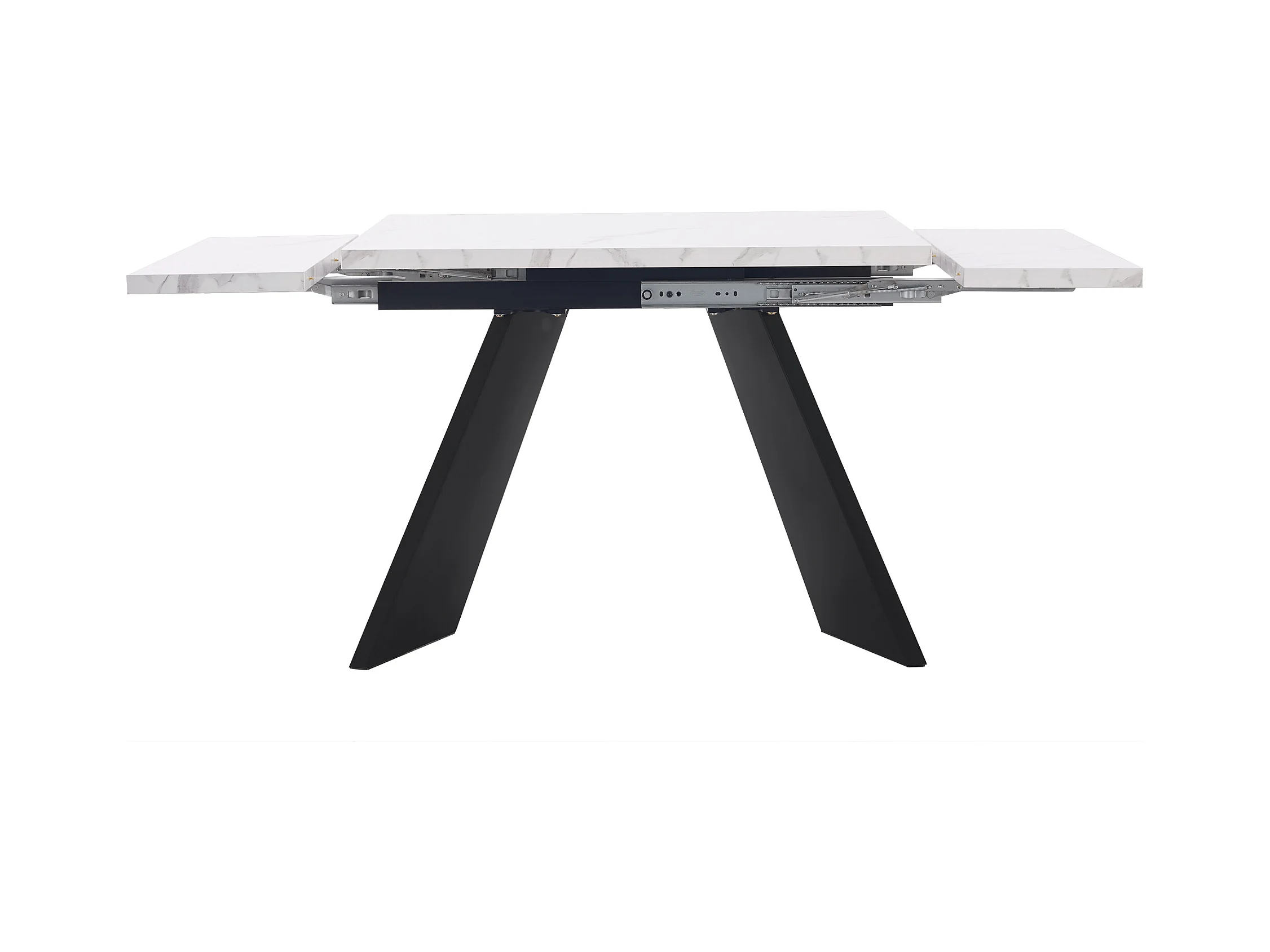 Rozkładany stół jadalny dla 4-6 osób - 120/160 x 80 x 75,4 cm - MDF + skrzyżowane nogi metalowe - Biały + czarny